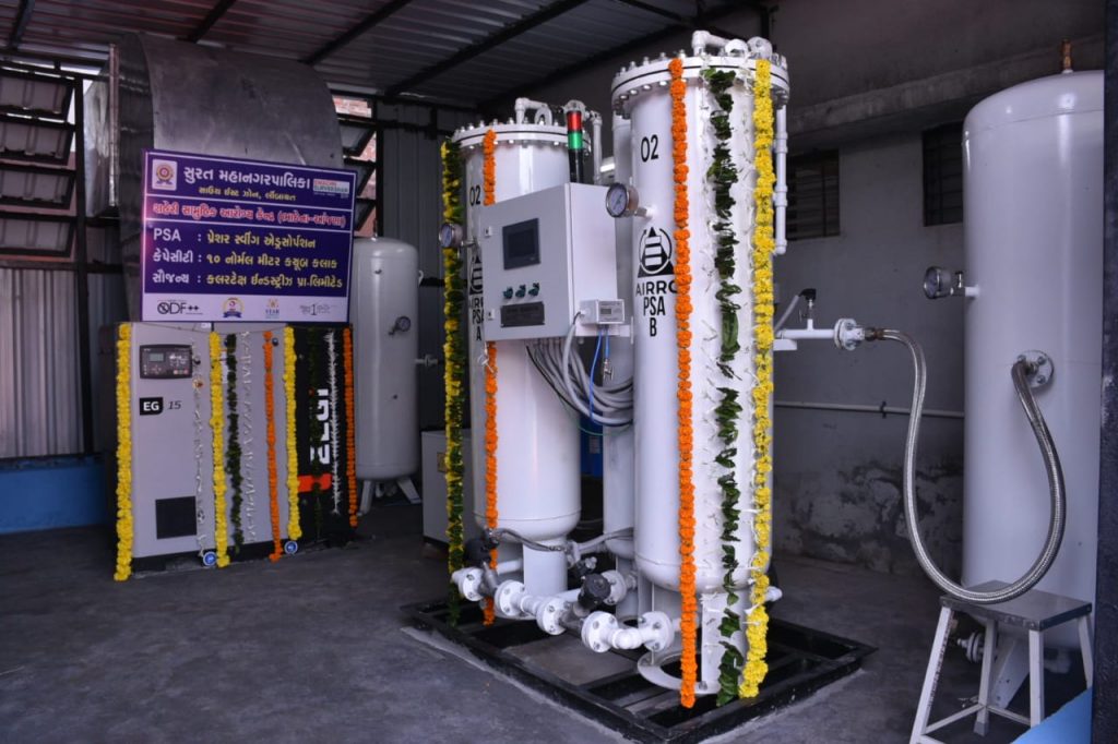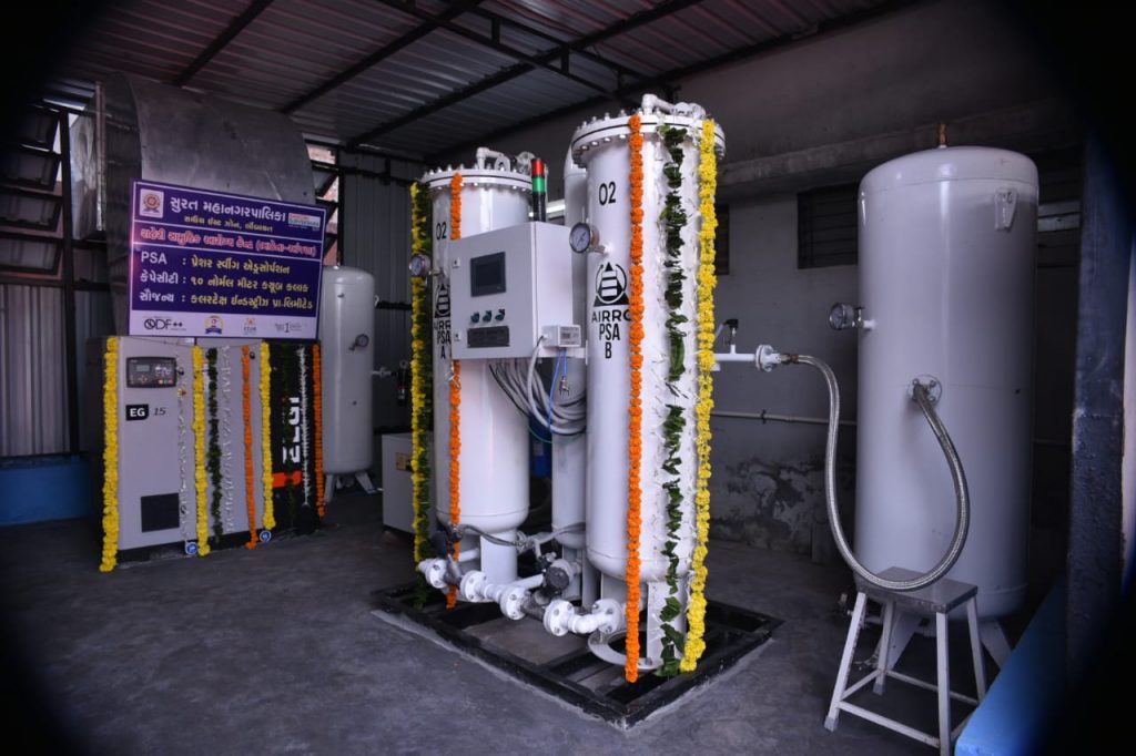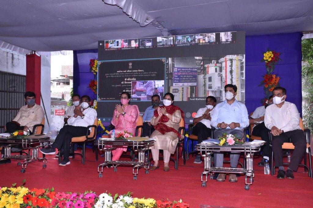 રાજય સરકારના ૦પ(પાંચ) વર્ષની સમાપ્તિ અવસરે આજ રોજ ”વિકાસ દિવસ” નિમિત્તે સુરત મહાનગરપાલિકા દ્વારા લિંબાયત ઝોન વિસ્તારમાં ભાઠેના, કતારગામ, કોસાડ શહેરી આરોગ્ય કેન્દ્ર તથા સ્મીમેર ખાતે ગુજરાત રાજયના માન.મુખ્યમંત્રી શ્રી વિજયભાઈ રૂપાણીના વરદ્હસ્તે ઈ–લોકાર્પણ તથા કોરોના વોરિયર્સને સન્માનિત કરવાનો કાર્યક્રમ ભાઠેના શહેરી આરોગ્ય કેન્દ્ર ખાતે યોજાયો હતો. આ પ્રસંગે સ્વાગત પ્રવચન કરતા માન. કમિશનર શ્રી બંછાનીધિ પાનીએ જણાવ્યું હતું કે આજરોજ વિકાસની સાથે સાથે આરોગ્યની સેવાનો સમન્વય થયો છે. વૈશ્વિક મહામારી કોરોનાના કપરા કાળમાં રાત–દિવસ સતત લોકોની સેવા કરનાર કોરોના વોરિયર્સના સન્માન તથા કતારગામ, કોસાડ, સ્મીમેર ખાતે પણ .કબ પ્લાન્ટનું લોકાર્પણ થનાર છે. ભાઠેના અને કતારગામ શહેરી આરોગ્ય કેન્દ્ર ખાતે કલરટેક્ષના સૌજન્યથી કોસાડ ખાતે રૂા.૧૮ લાખના ખર્ચે ટોરેન્ટ પાવરના સૌજન્યથી તથા સ્મીમેર ખાતે મચમફ દ્વારા ૦ર(બે) મેટ્રીક ટનની ક્ષમતા વાળા .કબ પ્લાન્ટનો શુભારંભ થશે જે આનંદનો અવસર છે. કોરોનાની પ્રથમ અને બીજી લહેરનો સમય સૌથી કપરો સમય હતો. આ સમય દરમ્યાન સુરત મહાનગરપાલિકાએ પરપ્રાંતિય લોકોની જમવાની વ્યવસ્થા તથા ૪પ૦ ટ્રેનો મારફત તેઓને વતનમાં મોકલવાની વ્યવસ્થા કરી હતી. કોરોનાની બીજી લહેર દરમ્યાન ઓકિસજનનો વપરાશ ઘણો વધારે હતો. હજીરા ખાતે ઓકિસજનની વ્યવસ્થા શહેરની સાથે સાથે અન્ય શહેરો રાજયોમાં આયોજન પૂર્વક વિતરણ વ્યવસ્થા ગોઠવવામાં આવી હતી. હવામાં રહેલ ઓકિસજનને પ્રોસેસ કરી .કબ પ્લાન્ટ ૯૩–૯૬% શુદ્ધ ઓકિસજન જનરેટ કરે છે. સામાન્ય રીતે હવામાં ઓકિસજનનું પ્રમાણ ર૧% હોય છે. ભાઠેના અને કતારગામ શહેરી આરોગ્ય કેન્દ્ર ખાતે પ્લાન્ટ દિઠ એક દિવસમાં ૩૪ ઓકિસજન સીલીન્ડર જેટલો ઓકિસજન જનરેટ થશે. કોસાડ આરોગ્ય કેન્દ્ર ખાતે પ્લાન્ટ દિઠ એક દિવસમાં ૧૦ર ઓકિસજન સીલીન્ડર જેટલો ઓકિસજન જનરેટ થશે. સુરત મહાનગરપાલિકા દેશ અને દુનિયામાં એક એવી સ્વાયત સંસ્થા છે જે લોકોને સેવા માટે સમર્પિત તથા કટીબદ્ધ છે. આ અવસરે કોરોનાના કપરા કાળમાં સતત ખડે પગે ફરજ બજાવનાર ડે.કમિશનર ડો. આશિષ નાયક અને તેમની ટીમને શુભેચ્છા તથા અભિનંદન પાઠવ્યા હતા. માન. ધારાસભ્યશ્રી અરવિંદભાઈ રાણાએ જણાવ્યુ હતું કે કોરોના સામે બચવાનો એકમાત્ર ઉપાય વેકિસન હોવાથી સરકાર દ્વારા વેકસિન આપણા દેશમાં જ બને ત માટેના સઘન પ્રયાસો હાથ ધરી બે અલગ અલગ વેકિસન તૈયાર કરી કરોડો દેશ વાસીઓને આપી છે. સુરત મહાનગરપાલિકાના તમામ પદાધિકારી, અધિકારી, કર્મચારીઓ કોરોના વોરિયર્સ તરીકે અથાગ મહેનત કરી શહેરીજનોના જીવન બચાવ્યા છે. તે પ્રસંશનીય છે. માન.ધારાસભ્ય શ્રીમતિ સંગીતાબેન પાટીલએ જણાવ્યું હતું કે કોરોનાના કપરા કાળમાં સરકાર તથા સુરત મહાનગરપાલિકા દ્વારા જે કામગીરી કર