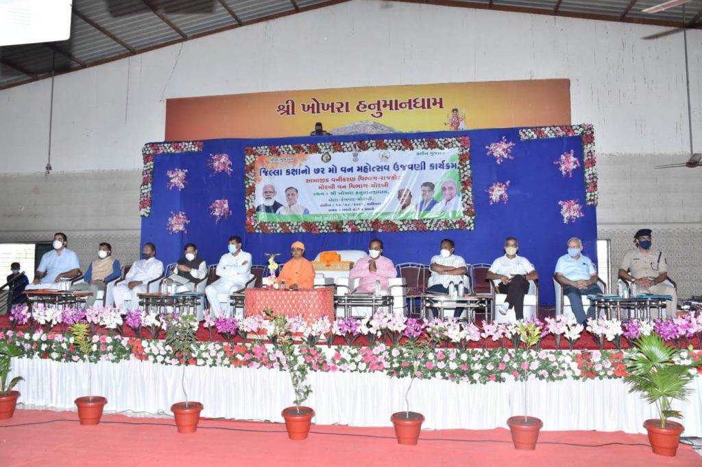 સવારે આયોજિત આ કાર્યક્રમમાં મંત્રીશ્રી ધમેન્દ્રસિંહ જાડેજાએ જણાવ્યું હતુ કે, ઇ.સ. ૧૯૫૦માં કનૈયાલાલ મુનશીએ વનમહોત્સવ ઉજવણીની જાહેરાત કરી હતી. તેમજ જયારે કેન્દ્ર સરકારમાં પર્યાવરણ ખાતુ નવુ શરૂ કરવામાં આવ્યું ત્યારે તેને પ્રથમ મંત્રી તરીકે વાંકાનેર રાજવી પરીવારના દિગવિજયસિંહ ઝાલાની નિમણૂક કરવામાં આવી હતી. સમગ્ર વિશ્વને કોરોના મહામારીએ હલાવી નાખી ત્યારે આપણે બધાને વૃક્ષોનું મહત્વ સમજાયું હશે. ગુજરાત ગ્રીન બને અને રણીયામણું બને એ માટે રાજય સરકાર સતત પ્રયત્ન કરી રહી છે.
