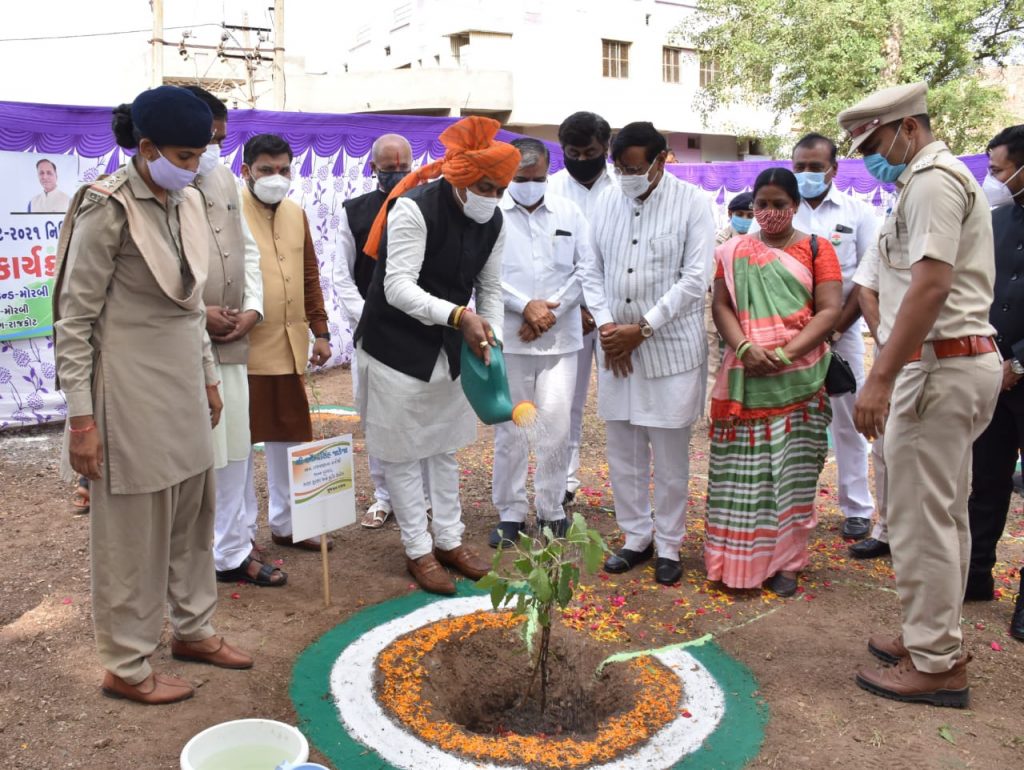 આ ઉપરાંત કોવીડ-૧૯ કોરોના મહામારીમાં ઉત્કૃષ્ટ કાર્ય કરનાર કોરોના વોરિયર્સનું રાજય કક્ષાના અન્ન નાગરિક પુરવઠા મંત્રીશ્રી ધમેન્દ્રસિંહ જાડેજાના હસ્તે વિશેષ બહુમાન કરાયું હતુ. કાર્યક્રમના અંતે મહેમાનો અને અગ્રણીઓ દ્વારા વૃક્ષારોપણ કરાયું હતું.આ પ્રસંગે મોરબી ધારાસભ્ય બ્રિજેશભાઇ મેરજા, જિલ્લા પોલીસ વડા એસ.આર.ઓડેદરા, અધિક નિવાસી કલેકટરશ્રી એન.કે. મુછાર, મોરબી પ્રાંત અધિકારી ડી.એ.ઝાલા, ડીવાયએસપી સર્વશ્રી રાધિકા ભારાઇ, શ્રી ઉપાધ્યાય, શ્રી પઠાણ, મોરબી નગરપાલિકા પ્રમુખ કુસુમબેન, જિલ્લા શિક્ષણાધિકારી એમ.બી. સોલંકી, કાર્યપાલક ઇજનેરશ્રી જોષી, જિલ્લા ભાજપ પ્રમુખ દલર્ભજીભાઇ દેથરીયા, પૂર્વ ધારાસભ્ય સર્વશ્રી કાંતિલાલ અમૃતિયા, મોરબી ભાજપ મહામંત્રીશ્રી જયોતિસિંહ જાડેજા, મોરબી સીટી મામલતદાર શ્રી રૂપાપરા, મોરબી ગ્રામ્ય મામલતદાર શ્રી જાડેજા, ચીફ ઓફિસરશ્રી સરૈયા, તાલુકા વિકાસ અધિકારીશ્રી ગોહિલ સહિત સિમિત સંખ્યામાં અધિકારી, પદાધિકારીઓ સહિત સરકારી કર્મચારીઓ, હોદ્દેદારો, અગ્રણીઓ, વિદ્યાર્થીઓ અને નાગરિકો ઉપસ્થિત રહ્યા હતા