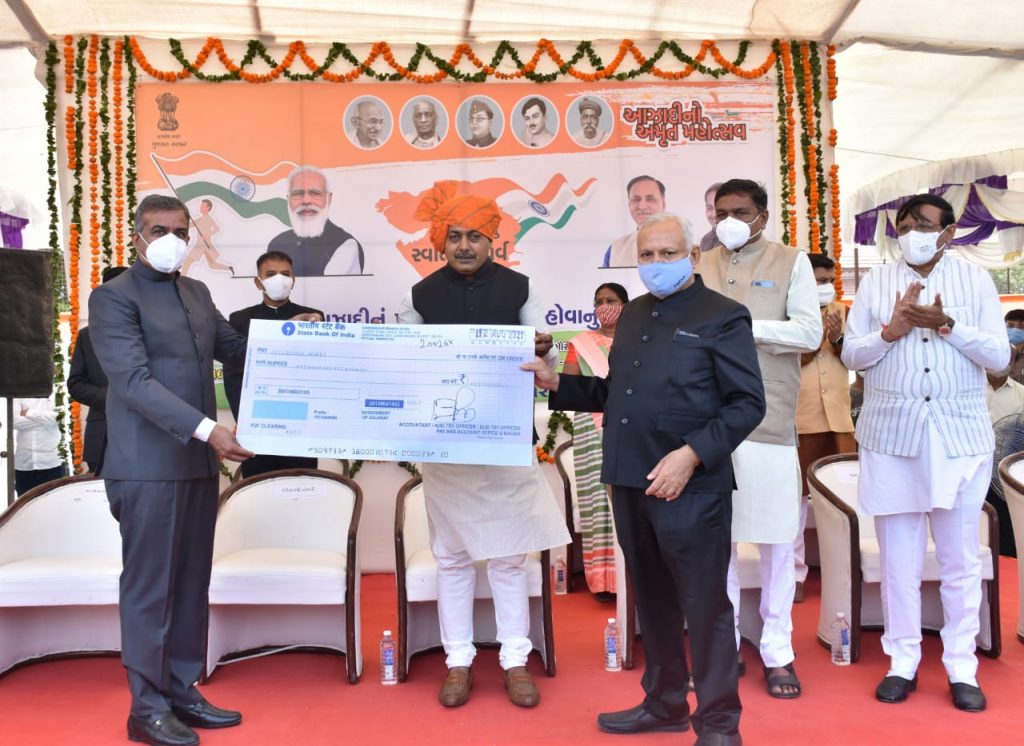 રાજય કક્ષાના અન્ન નાગરિક પુરવઠા મંત્રીશ્રી ધમેન્દ્રસિંહ જાડેજા દ્વારા રાષ્ટ્ર ધ્વજને સલામી અપાઇ