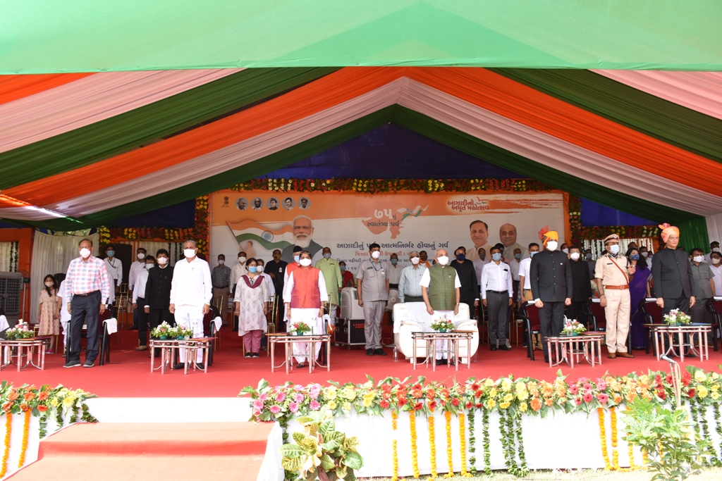 ૭૫ માં સ્વાતંત્ર્ય પર્વની જિલ્લા કક્ષાની ઉજવણી પ્રસંગે નાયબ મુખ્યમંત્રી શ્રી નીતિનભાઇ પટેલે પશંસનીય કામગીરી કરનારા પોલીસ અધિકારીઓ-જવાનો તેમજ કોરોના વોરિર્યસનું પ્રશસ્તિપત્ર આપીને સન્માન કર્યું હતું. આ ઉપરાંત કલેક્ટર શ્રીને જિલ્લાના વિકાસકાર્યો માટે રૂ. ૨૫ લાખનો ચેક પણ અર્પણ કર્યો હતો.