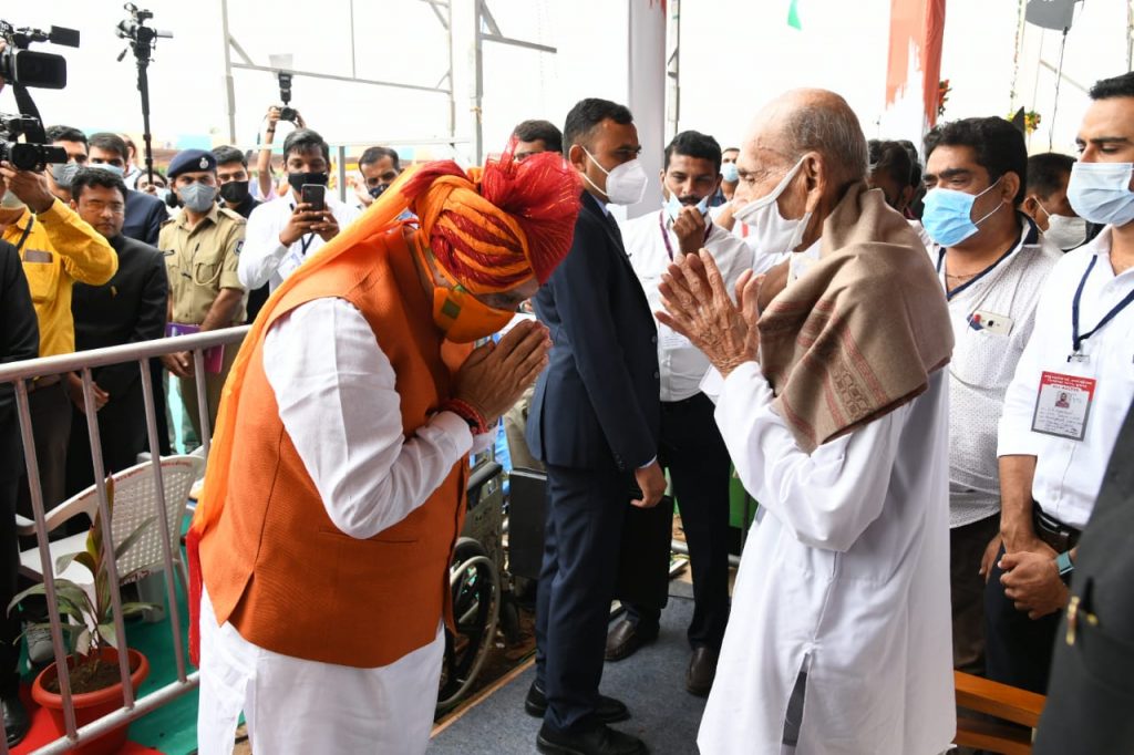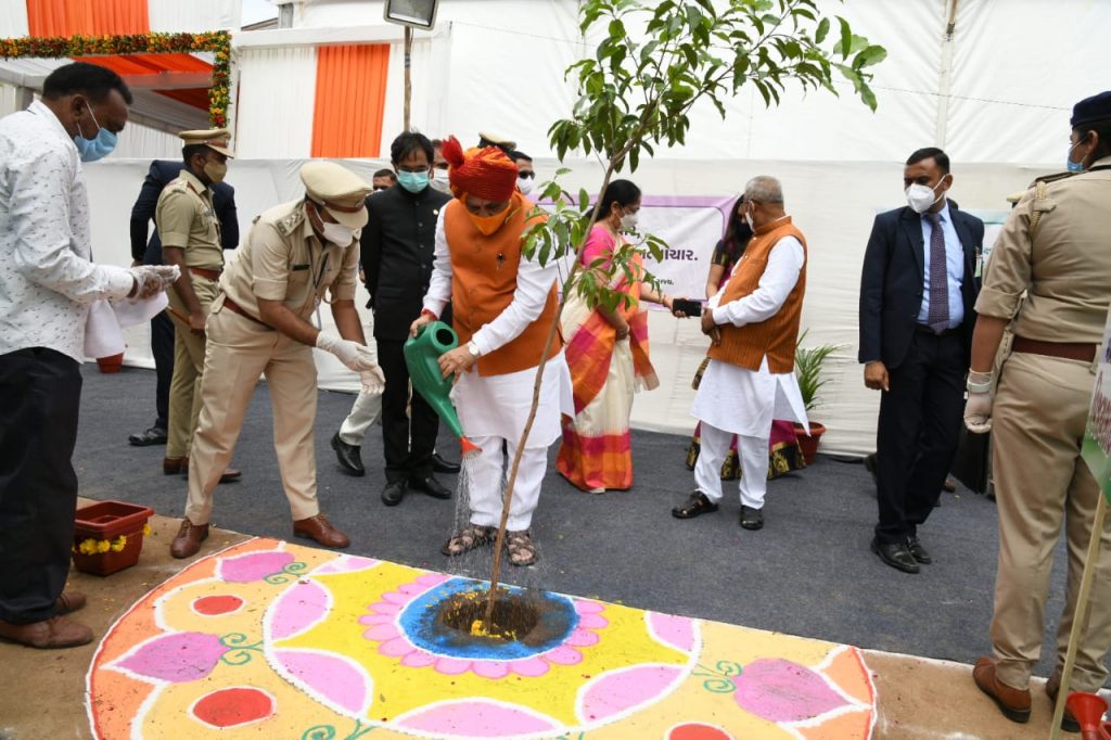 મુખ્યમંત્રીશ્રીએ ખુલ્લી જીપમાં લોકોનું અભિવાદન ઝીલી સ્વાતંત્ર્ય સેનાની લાભશંકરભાઇ દવેનું સન્માન કરી વૃક્ષારોપણ કર્યુ હતુ.
