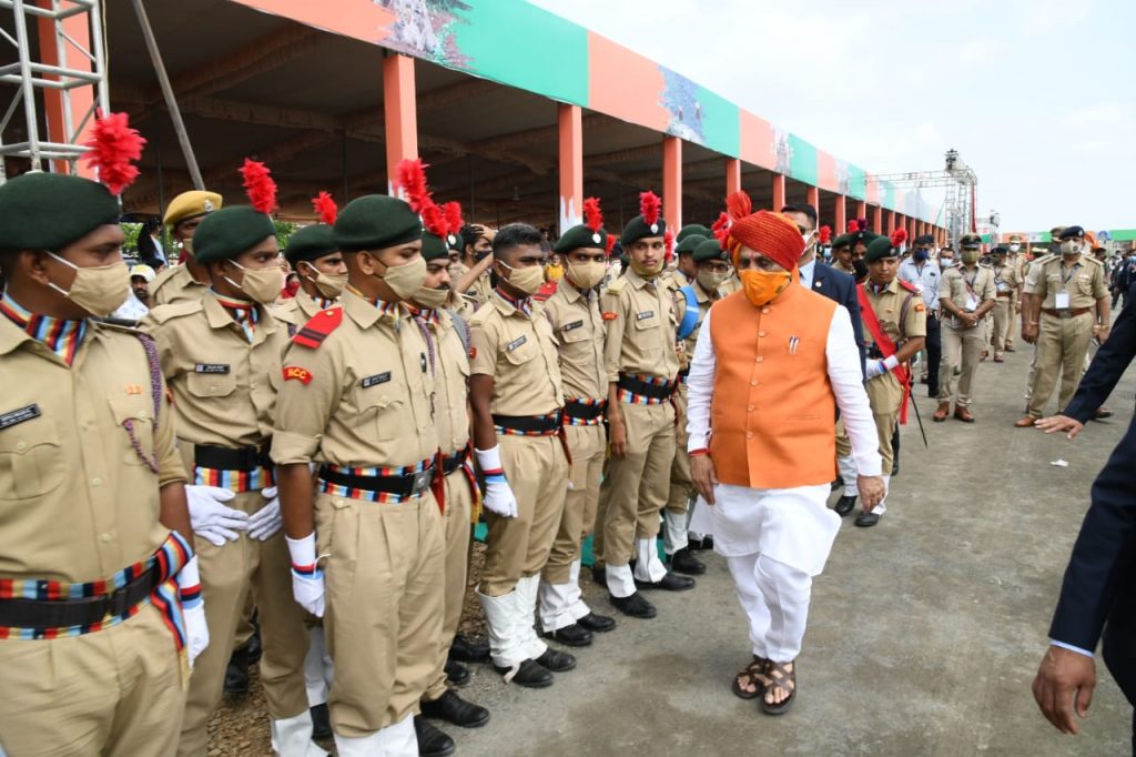 મુખ્યમંત્રીશ્રી વિજયભાઇ રૂપાણીએ ૭૫મા સ્વાતંત્ર્ય પર્વની રાજ્ય કક્ષાની ઉજવણી અંતર્ગત જૂનાગઢ ખાતે રાજ્યકક્ષાના ધ્વજવંદન સમારોહમાં તિરંગાને સલામી આપી હતી.