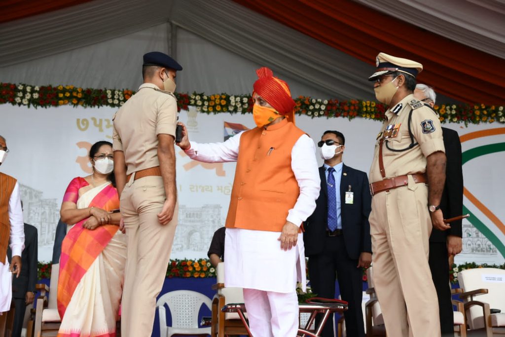 જૂનાગઢમાં મુખ્યમંત્રીશ્રીએ ખુલ્લી જીપમાં લોકોનુ અભિવાદન ઝીલી સ્વાતંત્ર્ય સેનાનીનું કર્યુ સન્માન, પોલીસના સાહસ હેરત ભર્યા શો નિહાળી ગુજરાત પોલીસને બિરદાવતા મુખ્યમંત્રીશ્રી