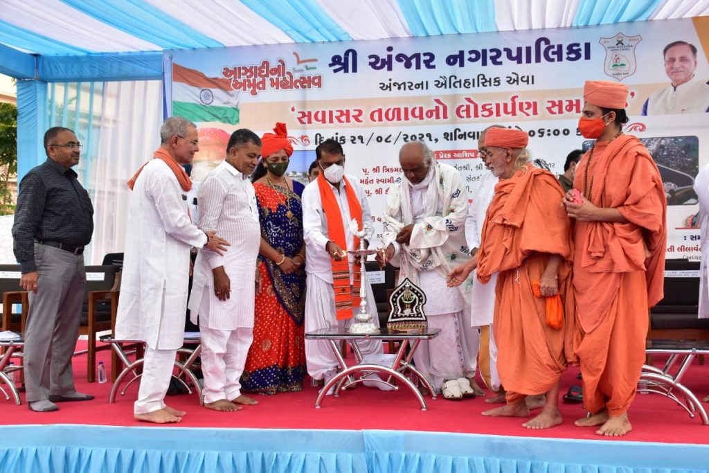 આજરોજ અંજાર ખાતે રાજ્યમંત્રીશ્રી વાસણભાઇ આહિરના વરદ હસ્તે સવાસર તળાવનું લોકાર્પણ કરવામાં આવ્યું હતું.