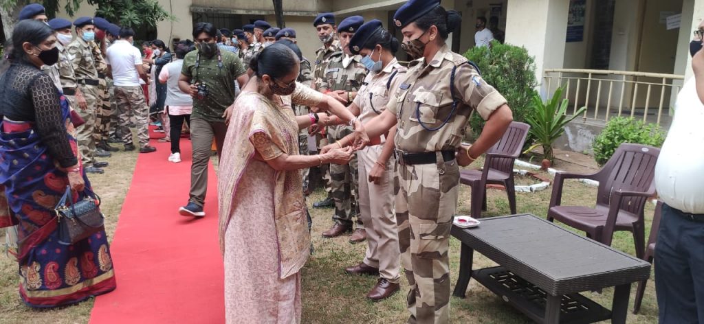 દેશની સેવામાં હંમેશા સરહદો ઉપર પોતાના પરિવાર થી દુર રહીને આપણી મા ભોમ ની સુરક્ષા કરતા આપણા મહેસાણા ખાતે ONGC ની મિલકતો ની રક્ષા માટે ફરજ બજાવતા દેશના CISF ના જવાનો ને પણ રાખડી બાંધી પરિવારના સભ્ય ની જેમ હૂંફ આપી.