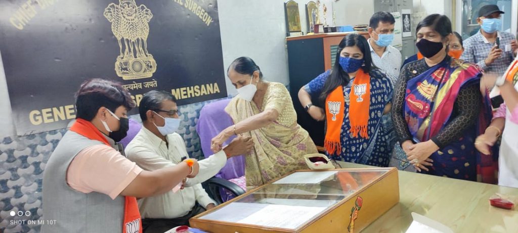 મહેસાણા સિવિલ હોસ્પિટલના સિવિલ સર્જન શ્રી જોશી સાહેબ અને અન્ય નર્સ બહેનો ને બાંધી રાખડી