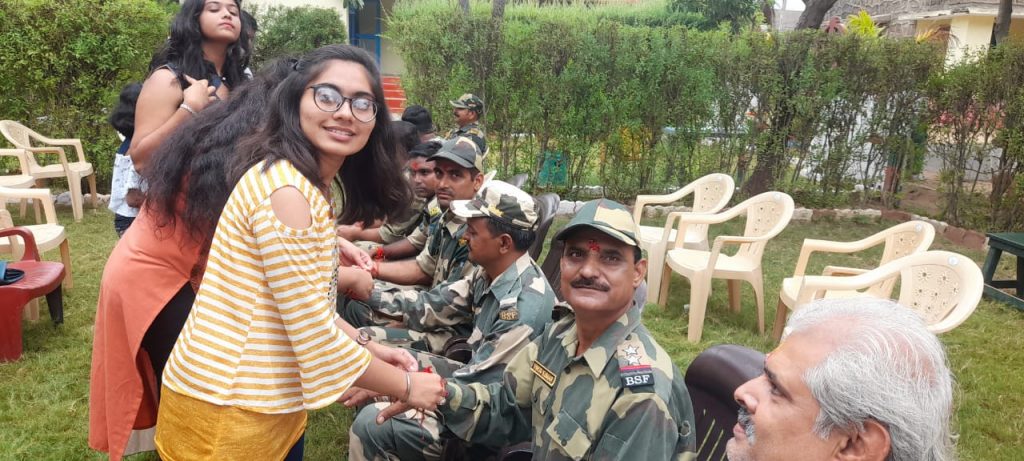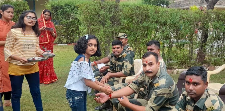 માંડવી તા. ૨૨, યંગ જાયન્ટ્સ ગ્રુપ ઓફ માંડવી દ્વારા રક્ષાબંધન પર્વ નિમિત્તે માંડવીના કાશી વિશ્વનાથ બીચ પાસે આવેલ બી.એસ.એફ. કેમ્પના જવાનોને રાખડી બાંધવાનો કાર્યક્રમ ગ્રુપ પ્રમુખ કૃપા દિપક સોનીના અધ્યક્ષ સ્થાને યોજાયો