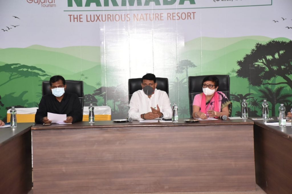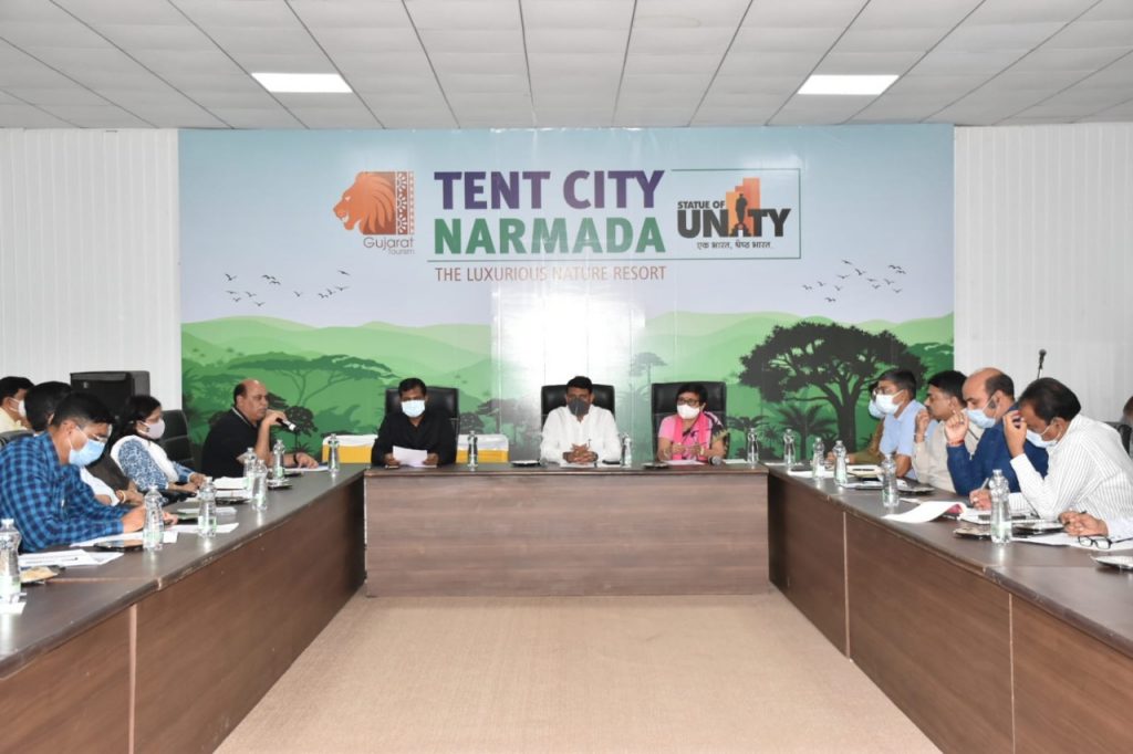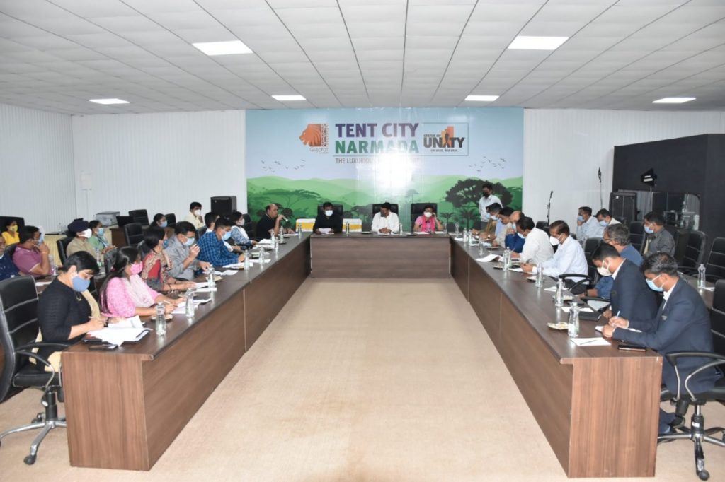 કોન્ફરન્સના આયોજનની પૂર્વ તૈયારીઓ અંગે કેવડિયા ખાતે ગુજરાતના મહિલા અને બાળ કલ્યાણ વિભાગના મંત્રીશ્રી ગણપતસિંહ વસાવા અને રાજ્યકક્ષાના મંત્રી શ્રીમતી વિભાવરીબેન દવેએ યોજેલી સમીક્ષા બેઠક