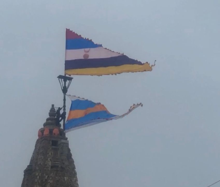 પશ્ર્ચિમભારતના તીર્થછેત્ર મોક્ષપુરી દ્વારકા મા સુપ્રસિદ્ધ જગતમંદિર શિખર ઉપર મુળ સ્થાને ધ્વજાજી આરોહણ માટે ભારે પવન અડચણ બને છે માટે અગાઉની ધ્વજા ઉતારી ન શકાય અને બીજી ધ્વજા થોડી નીચે ચડાવવી પડે છે
