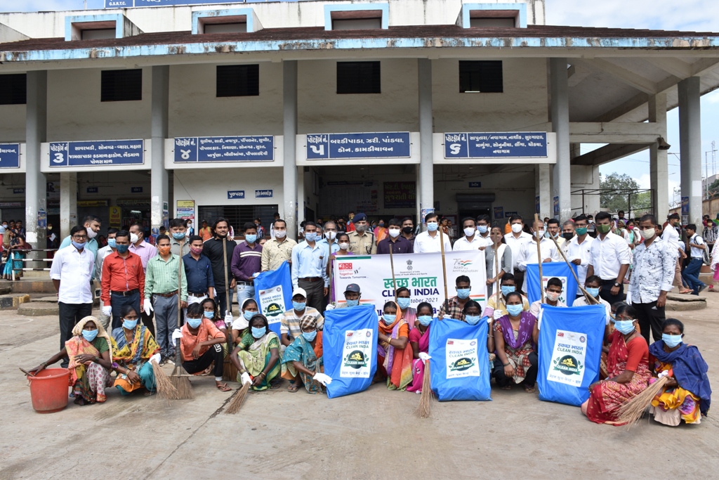 આઝાદીના અમૃત મહોત્સવની ઉજવણીના ભાગરૂપે વિશેષ કરીને ગ્રામીણ ક્ષેત્રોમા વ્યાપક સફાઈ ઝુંબેશ સાથે,સ્વચ્છ જીવનશૈલીનો સંદેશ આપતા ડાંગ કલેક્ટર શ્રી ભાવિન પંડયા એ આહવા ખાતેના એસ.ટી. ડેપોએ થી ક્લિન ઈન્ડિયાનુ બ્યૂગલ ફૂંકયુ છે.