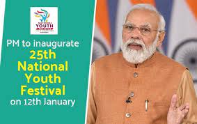 પ્રધાનમંત્રી શ્રી નરેન્દ્ર મોદી 12મી જાન્યુઆરી, 2022ના રોજ સવારે 11 વાગ્યે પુડુચેરીમાં વીડિયો કોન્ફરન્સિંગ દ્વારા 25માં રાષ્ટ્રીય યુવા મહોત્સવનું ઉદ્ઘાટન કરશે. આ દિવસ, સ્વામી વિવેકાનંદની જન્મજયંતી હોવાથી, રાષ્ટ્રીય યુવા દિવસ તરીકે મનાવવામાં આવે છે.