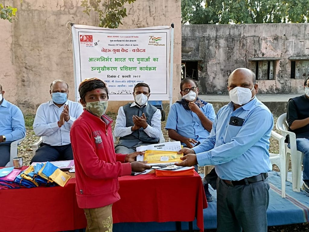 ભારત સરકાર યુવા કાર્ય અને ખેલ મંત્રાલય નેહરુ યુવા કેન્દ્ર,વડોદરા દ્વારા ડભોઈ તાલુકાની વણાદરા વિનય મંદિર હાઈસ્કૂલ ખાતે આત્મનિર્ભર ભારત અંગે યુવાનો માટે ઉન્મુખીકરણ કાર્યક્રમ યોજાયો હતો. નેહરુ યુવા કેન્દ્રએ યુવાનો માટે ટ્રેનિંગ આપી આત્મનિર્ભર બનવા માટે માર્ગદર્શન પૂરું પાડે છે.આ સંદર્ભે તજજ્ઞો દ્વારા તમામ યુવાન મિત્રોને આત્મનિર્ભર ભારત પર યુવાનો માટેની વિવિધ વિભાગોને લગતી આત્મનિર્ભર ભારત અભિયાનની વિવિધ યોજનાઓની માહિતી આપવામાં આવી હતી. નાના અને સૂક્ષ્મ ઉદ્યોગોને લગતી યોજનાઓ,આત્મનિર્ભર ભારત અંતર્ગત બેંકને લગતી વિવિધ યોજનાઓ વિશે માહિતી આપી હતી. ઉદ્યોગકારો અને કૃષિને લગતી વિવિધ યોજનાઓ વિશે વિગતવાર સમજ આપવામાં આવી હતી. રિસોર્સ પર્સન દ્વારા ઉપસ્થિત તમામ યુવાન મિત્રોને કારકિર્દી વિશે માર્ગદર્શન આપી કેન્દ્ર અને રાજ્ય સરકારના વિભાગોને લગતી આત્મનિર્ભર ભારત અભિયાનની વિવિધ યોજનાઓની માહિતી આપવામાં આવી હતી. ધો. ૧૦ અને ધો.૧૨ અભ્યાસ પછી કયો વિષય પસંદ કરવો? આર્ટસ,કૉમર્સ અને સાયન્સ પ્રવાહમાં કેટલી તકો છે? જિલ્લા વહીવટી તંત્ર ના રોજગાર વિભાગ દ્વારા નોકરી વિશેની માહિતી આપવામાં આવી હતી.ખાસ કરીને સરકારી અધિકારી બનવા માટે માટે કેટલા અભ્યાસની લાયકાત હોવી જોઈએ? કેવી રીતે તૈયારીઓ કરવી જોઈએ. કોલેજના વિદ્યાર્થીઓ આગળ કયા ક્ષેત્રમાં માસ્ટર્સ કરી શકે છે? કોલેજના વિદ્યાર્થીઓ માટે નોકરીની તકો શું છે? તે માટે રંગમંચના નાટ્યકાર મિત્રો દ્વારા ગમ્મત સાથે જ્ઞાનના માધ્યમથી કારકીર્દી તકો વિશે સરળ ભાષામાં નાટ્યકીકરણ પદ્વતિ દ્વારા સમજુતી આપવા સાથે યુવાનોને પોતાના ક્ષેત્રમાં સરળતાથી કારકિર્દી વિશે માર્ગદર્શન મળી રહે અને તે વિશે જાગૃતિ લાવવાનો પ્રયત્ન કરાયો હતો. વિનય મંદિર વણાદરા હાઈસ્કૂલના આચાર્ય કનુભાઈ પટેલ,વૈજનાથ વિદ્યાલયના શિક્ષક રાકેશ રબારી અને તુષારભાઈ કાર્લેકર હસ્તે યુવાનોને સ્ટેશનરી કિટ વિતરણ કરવાની સાથે કારકિર્દી માર્ગદર્શન આપી આત્મનિર્ભર બનવાની પ્રેરણા આપી હતી. હાઈસ્કૂલના શિક્ષકો પ્રાથમિક શાળાના આચાર્ય તથા મોટી સંખ્યામાં યુવાનો ઉપસ્થિત રહ્યા હતા. સમગ્ર કાર્યક્રમનુ સફળ સંચાલન શાળાના શિક્ષક નરેન્દ્રભાઈ દ્વારા કરવામાં આવ્યું હતું.