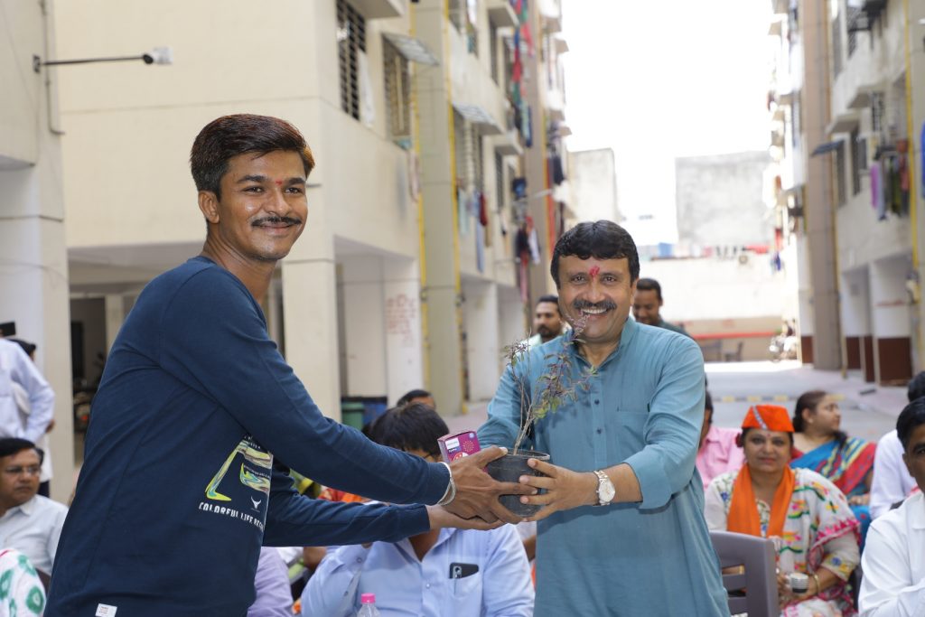 સુમન સારથિ આવાસમાં કુલ ચાર બિલ્ડીગમાં ૨૭૩ લાભાર્થી પરિવારોને છત્ર મળ્યું છે, ત્યારે મંત્રીશ્રીએ લાભાર્થીઓને રૂબરૂ મળીને તેમના મંતવ્યો જાણ્યા હતા.