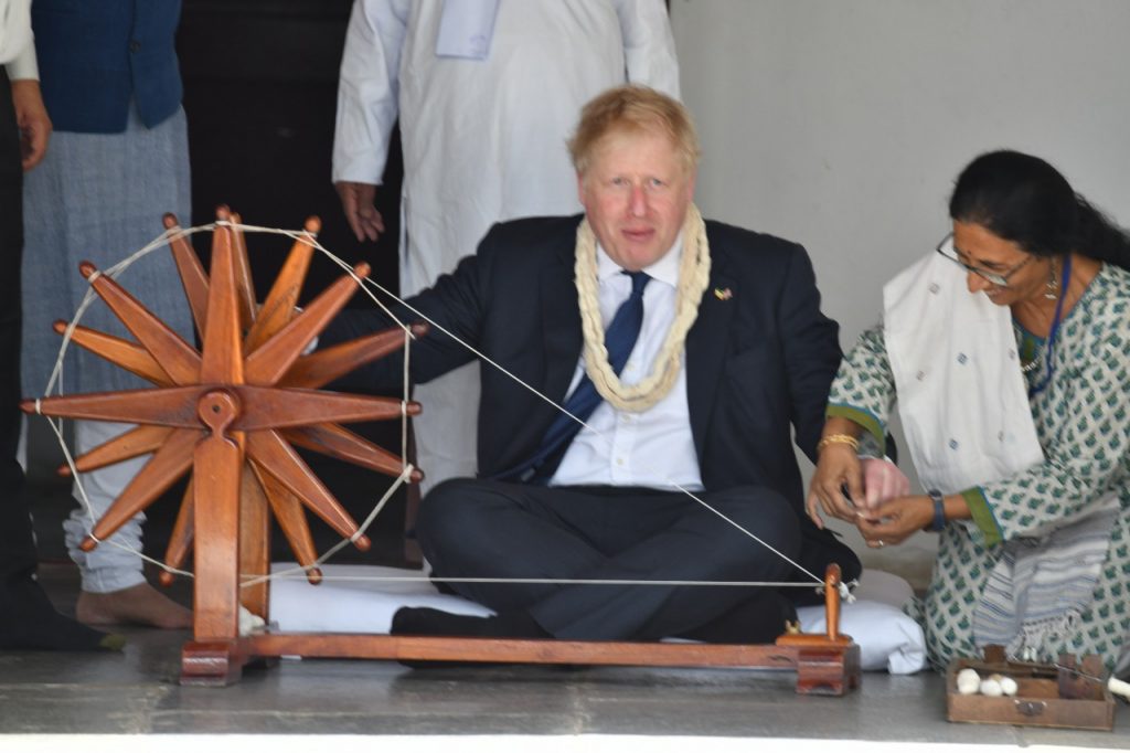 યુ.કે.ના વડાપ્રધાન શ્રી બોરિસ જોન્સન 21 એપ્રિલથી ભારતના પ્રવાસે છે. ભારત પ્રવાસની શરૂઆત શ્રી બોરિસ જોન્સને ગુજરાતથી કરી છે. ગુજરાતની મુલાકાતે આવેલા યુ.કે.ના વડાપ્રધાન શ્રી બોરિસ જોન્સને અમદાવાદમાં આવેલા વિશ્વ પ્રસિદ્ધ ઐતિહાસિક ગાંધી આશ્રમની મુલાકાત લીધી હતી. ગાંધી આશ્રમની સમગ્ર મુલાકાત દરમિયાન મુખ્યમંત્રી શ્રી ભૂપેન્દ્ર પટેલ પણ તેમની સાથે જોડાયા હતા. શ્રી બોરિસ જોન્સન હૃદયકુંજમાં ગાંધીજીની પાવનભુમિમાં આવીને ગાંધી વિચારોથી પ્રભાવિત થયા હતા. તેમણે ગાંધીજીની પ્રતિમાને પુષ્પ અર્પણ કર્યા હતા.હૃદયકુંજના વિવિધ ખંડો નિહાળી તેઓએ ગાંધીજીને પ્રિય એવા ચરખા પર કાંતણ કર્યું હતું અને ગાંધી આશ્રમ ખાતે આવેલી અમદાવાદ ગેલેરીની પણ મુલાકાત લીધી હતી. યુ.કે.ના વડાપ્રધાન શ્રી બોરિસ જોન્સને ઐતિહાસિક ગાંધી આશ્રમમાં આવેલી મીરા કુટીરની પણ મુલાકાત લીધી હતી. બ્રિટિશ લેડી મેડલીન સ્લેડ જેઓ બ્રિટિશ નાગરિક હતા. તેઓ ગાંધીજીના વિચારોથી પ્રભાવિત થઈને ગાંધી આશ્રમ આવ્યા હતા અને તેઓ જે કુટિરમાં રહેતા હતા એ કુટીરનું નામ મીરા કુટીર રાખવમાં આવ્યું છે. વિઝિટર્સ બુકમાં પોતાનો ભાવ વ્યક્ત કરતા યુ.કે.ના વડાપ્રધાન શ્રી બોરિસ જોન્સને લખ્યું કે, ‘મારી ગાંધી આશ્રમની મુલાકાત અવર્ણનીય છે. અને ગાંધી આશ્રમમાં આવવાનો મારો અનુભવ પણ ખૂબ જ સારો રહ્યો. સત્ય અને અહિંસાથી દુનિયા કેવી રીતે બદલી તેનું ઉદાહરણ સમગ્ર વિશ્વને ગાંધીજીએ પૂરું પાડ્યું છે…’આ અવસરે ગાંધી આશ્રમ તરફથી ‘ગાઈડ ટુ લંડન’ અને ‘ઓટોબાયોગ્રાફી ઓફ મીરાબેન’ એમ બે પુસ્તકો શ્રી જોન્સનને ભેટ સ્વરૂપે આપવામાં આવી હતી. આ વેળાએ મુખ્ય સચિવ શ્રી પંકજકુમાર, મુખ્યમંત્રીશ્રીના મુખ્ય અગ્રસચિવ શ્રી કે.કૈલાસનાથન, અમદાવાદ જિલ્લા કલેકટર સંદીપ સાગલે, સાબરમતી આશ્રમના ટ્રસ્ટી શ્રી કાર્તિકેય સારાભાઈ, ટ્રસ્ટી શ્રી અમૃતભાઈ મોદી, સાબરમતી આશ્રમના ડિરેક્ટર શ્રી અતુલ પંડ્યા, ચીફ પ્રોટકોલ ઓફિસર જ્વલંત ત્રિવેદી ઉપસ્થિત રહ્યા હતા.