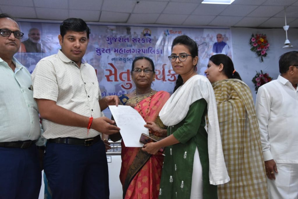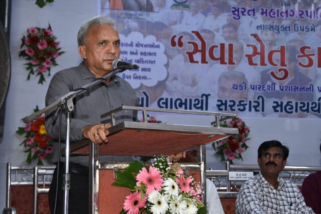 રાજય સરકારશ્રી ધ્વારા અમલીકૃત અનેકવિધ લોકઉપયોગી યોજનાઓ પ્રવૃત્તિઓ તથા વહીવટ પ્રત્યે પ્રજાના પ્રશ્નોનું ન્યાયીક ચોકકસ તથા ઝડપી ઉકેલ આવે તેમજ રાજ્યના વહીવટમાં પારદર્શીતા વધે તે હેતુથી નાગરિકોની વ્યક્તિલક્ષી યોજનાઓનો સંલગ્ન વિભાગો ધ્વારા સ્થળ ઉપર જ ઉકેલ લાવી શકાય તે હેતુસર તા . ૦૪/૦૬/૨૦૨૨ ના રોજ સવારે ૦૯:૦૦ થી ૦૫:૦૦ કલાક દરમ્યાન સુભાષનગર કોમ્યુનીટી હોલ , ટી.પી -40 , સંજયનગર સર્કલ પાસે , સુભાષનગર , લીંબાયત , સુરતખાતે સુરત મહાનગરપાલિકા ધ્વારા આઠમાંતબકકાનો ત્રીજા ” સેવાસેતુ કાર્યક્રમ ” નું આયોજન કરવામાં આવેલ હતું . સેવાસેતુ કાર્યક્રમમાં ઉપસ્થિત મહાનુભાવોનાં હસ્તે સેવાસેતુ કાર્યક્રમને ખુલ્લો મુકવામાં આવેલ . ” સેવાસેતુ કાર્યક્રમ ” માં ઉપસ્થિત ઝોનલચીફ શ્રી આર.જે માકડિયાએઆવકાર પ્રવચન આપતા જણાવેલ કે રાજ્ય સરકાર અને સુરત મહાનગરપાલિકા સંયુક્ત ઉપક્રમે સુરત શહેરમાં લીંબાયત , સુરત વિસ્તાર ખાતે સેવાસેતુ કાર્યક્રમનું આયોજન કરેલ છે જેથીએકજ સ્થળેથી અનેકવિધ યોજનાઓનો લાભમેળવે એવું આહવાન કરવામાં આવ્યુ . સ્લમ ઈમ્પ્રુવમેન્ટસમિતિના અધ્યક્ષશ્રી દિનેશભાઈ પુરોહિત ( રાજપુરોહિત ) પ્રાસંગિક ઉદબોધન કરતા જણાવ્યું હતું કે લીંબાયતવિસ્તારમાં સેવાસેતુ કાર્યક્રમમાં ગરીબ લોકોના વિવિધ પ્રશ્નોનો તાત્કાલિક નિકાલ કરવામાં આવશે.અને લોકો વધુમાં વધુ સેવાઓનો લાભ મેળવે તે માટે અપીલ કરવામાં આવી હતી . કાર્યક્રમમાં ઉપસ્થિત ગટર સમિતિના અધ્યક્ષશ્રી વિક્રમભાઈ પોપટ પાટીલએઉદબોધન કરતા જણાવ્યું હતું કેલીંબાયત વિસ્તારનાં લોકો સેવાસેતુ કાર્યક્રમ થકી વધુમાં વધુ લોકો સેવાઓનો લાભ મેળવે અને અન્ય નાગરીકોને લાભ અપાવે એવું આહ્વાન કરવામાં આવ્યું . કાર્યક્રમમાં ઉપસ્થિત માન . મેયર શ્રીમતી હેમાલીબેન બોઘાવાલાએ ઉદબોધન કરતા જણાવ્યું હતું કે સેવાસેતુના માધ્યમ થકી સરકારની વિવિધ સેવાઓનો ઘર- ઘર સુધી લાભ પહોચાડવાનો અભિગમ રહેલો છે . “ સેવાસેતુ કાર્યક્રમ ” એક સરકાર અને લોકો વચ્ચેનીકડી બની સમય અને નાણાનો બચત કરી લોકો સુધી સરકારશ્રી યોજનાઓ ખુબ સરળતાથી જરૂરિયાત મુજબ લાભ મળી રહે છે.મ્યુ.સદસ્યશ્રી ડો . નરેશભાઈ શાંતારામ પાટીલ દ્વારા આભાર વિધિ સંપન્ન કરવામાં આવી હતી , ધારાસભ્યશ્રી સંગીતાબેન પાટીલ તેમજજિવિવધ સિમિતના અધ્યક્ષશ્રીઓ અને મ્યુ.સદસ્યશ્રીઓએહાજર રહી લાભાર્થીઓને પ્રોત્સાહિત કર્યા હતા . ” સેવાસેતુ કાર્યક્રમ ” માં વિવિધ વિભાગો જેવા કે મેહસુલ વિભાગ , સમાજ કલ્યાણ વિભાગ , જીલ્લા ઉદ્યોગ કેન્દ્ર , સીટી સર્વે સુપ્રીટેન્ડન્ટ , સમાજ સુરક્ષા વિભાગ , પુરવઠા વિભાગ તથા સુરત મહાનગરપાલિકાના ગુમાસ્તા વિભાગ , વ્યવસાય વેરા વિભાગ , આકારણી / વસુલાત / પ્રોપર્ટી ટેક્ષ વિભાગ , આર.સી.એચ.વિભાગ , વિવિધ બેંકો વગેરે ધ્વારા દિવસ દરમ
