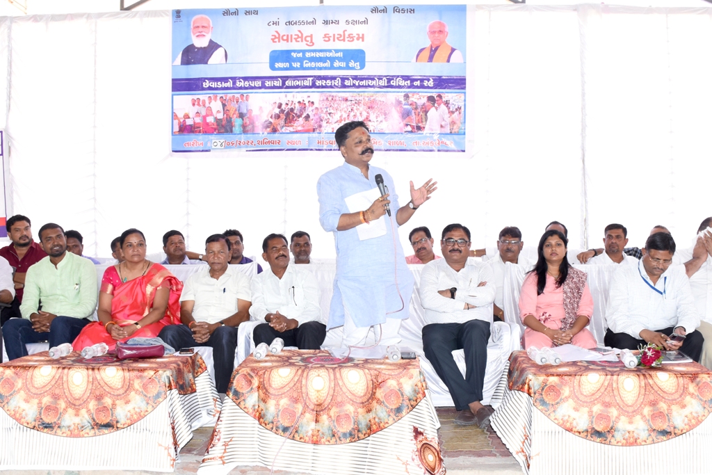 અંકલેશ્વર તાલુકાના ગ્રામ્ય વિસ્તારના આઠમા તબક્કાના સેવા સેતુ કાર્યક્રમનું માંડવા ગામની કુમાર શાળા ખાતે આયોજન કરવામાં આવ્યું હતું. આ કાર્યક્રમમાં ગ્રામ્ય વિકાસ અને ગૃહ નિર્માણ કેબીનેટ મંત્રી શ્રી અર્જુનસિંહ ચૌહાણ ઉપસ્થિત રહ્યા હતા. સેવા સેતુમાં વહીવટીતંત્રના 13 વિભાગોની 56 જેટલી સેવાઓને આવરી લેવામાં આવી હતી. રાજ્યનાં વહીવટમાં પારદર્શિતા વધે તેમજ પ્રજાની વ્યક્તિલક્ષી રજૂઆતો ઝડપથી ઉકેલાય તે હેતુથી તેમજ છેવાડાનો કોઈ પણ સાચો લાભાર્થી સરકારી યોજનાઓથી વંચિત ના રહે તે માટે સેવા સેતુ કાર્યક્રમનું આયોજન કરવામાં આવ્યું છે. આયુષ્યમાન ભારત કાર્ડ માટે લાભાર્થીઓ ઉમટી પડ્યા હતા. આ કાર્યક્રમમાં આરોગ્ય વિભાગ દ્વારા વેક્સીન સહીત આરોગ્ય ચકાસણી કરવામાં આવી હતી. આ કાર્યક્રમમાં મંત્રી શ્રી અર્જુનસિહ ચૌહાણએ ભરૂચ જિલ્લાનાં અંદાડા ગામની મુલાકાત લીધી હતી. આ વિસ્તારનાં ગંગા સ્વરુપા બહેનો, વૃધ્ધ પેન્શન, સખી મંડળ, આયુષ્માન કાર્ડથી લીધેલ લાભાર્થી બહેનોને માર્ગદર્શન આપ્યું હતું. તથા સરકારશ્રીની યોજનાઓનો લાભ વધુ લોકો સુધી વ્યાપ વધે તેમ જણાવ્યું હતું.ત્યારબાદ નર્મદા મૈયા બ્રીજ પરથી મા નર્મદાના અલૌકીક દર્શન કર્યા હતા. આ ઉપરાંત ભરૂચ સિવિલ હોસ્પિટલની મુલાકાત દરમિયાન મંત્રી શ્રી અર્જુનસિંહ ચૌહાણ દ્વારા સિવિલ હોસ્પિટલમાં સારવાર લઈ રહેલ દર્દીઓની સેવા-સુશ્રુષા અંગે પૃચ્છા કરી હતી. આ ઉપરાંત હોસ્પિટલના કમ્પાઉન્ડમાં આવેલ સેવા યજ્ઞ સમિતિમાં ઘરવિહોણા દર્દીઓની મુલાકાત લઈ તેમને સાંત્વના પાઠવી હતી. આ પ્રસંગે અંકલેશ્વર તાલુકા પંચાયતના પ્રમુખ શ્રી અરવિંદ પટેલ ,જિલ્લા પંચાયતના ઉપપ્રમુખ શ્રી ભરત પટેલ,નાયબ કલેકટર શ્રીમતિ નૈતિકાબેન પટેલ, મામલતદાર શ્રી કરણસિંહ રાજપૂત સહીત તાલુકા પંચાયત અને જિલ્લા પંચાયતના સભ્યો અને લાભાર્થીઓ ઉપસ્થિત રહ્યા હતા.