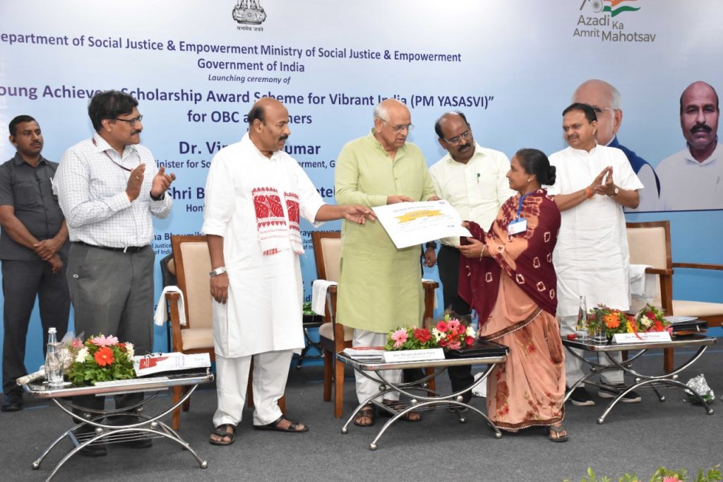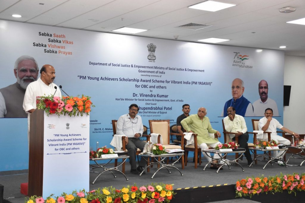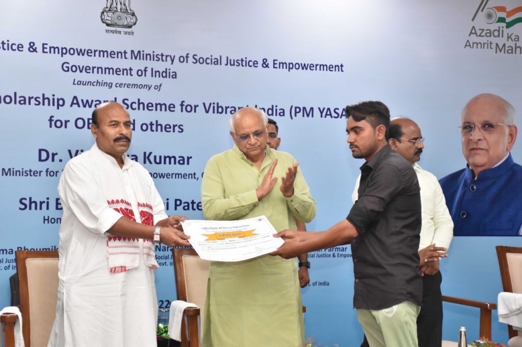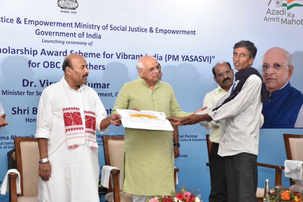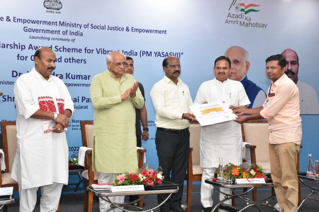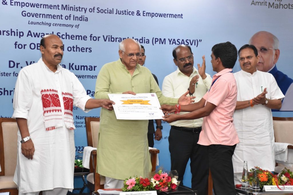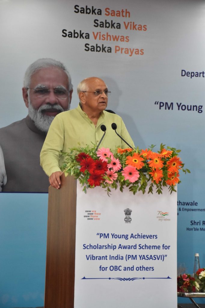મુખ્યમંત્રી શ્રી ભૂપેન્દ્ર પટેલે કેન્દ્ર સરકારના સામાજિક ન્યાય અને સશક્તિકરણ મંત્રાલય દ્વારા શરૂ કરાયેલી PM યશસ્વી યોજનાનું લોન્ચીંગ કરાવતા સ્પષ્ટપણે જણાવ્યુ કે વડાપ્રધાન શ્રી નરેન્દ્રભાઇ મોદીના આઠ વર્ષના સફળ સુશાસનમાં સામાજિક ન્યાય અને સશક્તિકરણ એ સરકારનો કાર્યમંત્ર બની ગયો છે. સર્વસમાવેશી-સર્વગ્રાહી અને પારદર્શી સુશાસનનું ઉત્તમ ઉદાહરણ આઠ વર્ષમાં લોકોએ જોયુ છે. આ સંદર્ભમાં તેમણે કહ્યુ કે સમાજના વંચિત, પછાત વર્ગો, આર્થિક રીતે પછાત વર્ગ અને ડી-નોટીફાઇડ જનજાતિના બાળકો-વિદ્યાર્થીઓને વિવિધ શિક્ષણ સહાય યોજનાનો લાભ અંડર વન અમબ્રેલા આપવાની પહેલ વડાપ્રધાને કરી છે. એટલું જ નહી દેશના લાખો વિદ્યાર્થીઓના યોગ્ય શિક્ષણ તેમજ કારકિર્દી ઘડતર માટે આ યોજના ખૂબ જ ઉપયોગી બનશે એવો વિશ્વાસ મુખ્યમંત્રીશ્રીએ દર્શાવ્યો હતો. મુખ્યમંત્રીશ્રીએ કેન્દ્રીય સામાજિક ન્યાય અને સશક્તિકરણ મંત્રી શ્રી ડૉ.વિરેન્દ્રકુમાર તથા રાજ્ય સરકારના સામાજિક ન્યાય અને અધિકારિતા મંત્રી શ્રી પ્રદીપભાઇ પરમાર, રાજ્ય કક્ષાના મંત્રી શ્રી આર.સી. મકવાણા અને કેન્દ્ર સરકારના સચિવશ્રીઓની ઉપસ્થિતિમાં આ યોજનાનું લોન્ચિંગ કર્યુ હતું. મુખ્યમંત્રીશ્રી અને કેન્દ્રીય મંત્રી તેમજ મહાનુભાવોના હસ્તે રાષ્ટ્રીય પછાત વર્ગ નાણાં અને વિકાસ નિગમના લાભાર્થીઓને લોન સર્ટિફિકેટ એનાયત કરવામાં આવ્યા હતા તથા પીએમ – યશસ્વી યોજના અંગેની પુસ્તિકાનું વિમોચન પણ કરવામાં આવ્યું હતું. શ્રી ભૂપેન્દ્ર પટેલે જણાવ્યુ કે, આ PM યશસ્વી યોજનાને પરિણામે વિદ્યાર્થીઓને સહાય સ્કોલરશિપ માટે સિંગલ પોઇન્ટ કોન્ટેક્ટ સહાય મળતી થશે. સાથોસાથ દેશભરમાં મૂળભૂત અભ્યાસક્રમ અને શિક્ષણના ધોરણો જાળવવામાં મહત્વપૂર્ણ મદદ થશે. મુખ્યમંત્રીએ શિક્ષણ, સ્વાસ્થ્ય અને સુરક્ષાને વિકાસના મુખ્ય આધાર ગણાવતા જણાવ્યુ કે, ગુજરાત દરેક બાળક, યુવાનને ઉત્તમ શિક્ષણ આપી શિક્ષણ ક્ષેત્રે પણ રોલ મોડલ બનાવવાની નેમ રાખે છે. ગુજરાત ડબલ એન્જિનવાળી સરકારના બેવડા લાભ મેળવી શિક્ષણ, આરોગ્ય સહિતના ક્ષેત્રોમાં આત્મનિર્ભર ગુજરાતથી આત્મનિર્ભર ભારતનો ધ્યેય પાર પાડશે એવો વિશ્વાસ મુખ્યમંત્રીશ્રીએ દર્શાવ્યો હતો. વડાપ્રધાનશ્રીએ જનહિતલક્ષી યોજનાઓના સેચ્યુરેશનનો નવતર વિચાર આપ્યો છે ગુજરાતે સરકારની યોજનાઓ-પ્રોગ્રામોને ૧૦૦ ટકા લાભાર્થી સુધી પહોંચાડવાની નીતિ-રીતિ અપનાવી છે, તેમ તેમણે ઉમેર્યુ હતું. મુખ્યમંત્રી યુવા સ્વાવલંબન યોજનામાં અત્યાર સુધીમાં ૩ લાખથી વધુ છાત્રોને ૧૩૧૮ કરોડની સહાય અપાઇ છે. તેની પણ ભૂમિકા મુખ્યમંત્રીશ્રીએ આપી હતી શ્રી ભૂપેન્દ્ર પટેલે ઉમેર્યુ કે, આ નવી PM યશસ્વી યોજના એક ભારત શ્રેષ્ઠ ભારતની નેમ પણ પાર પાડશે. કેન્દ્રીય સામાજિક ન્યાય અને અધિકારીતા 