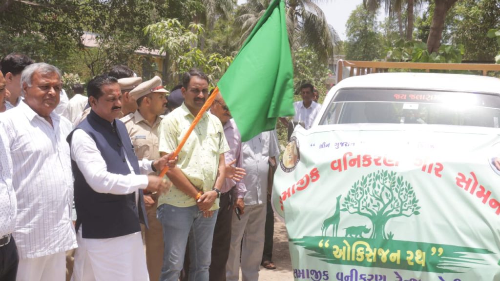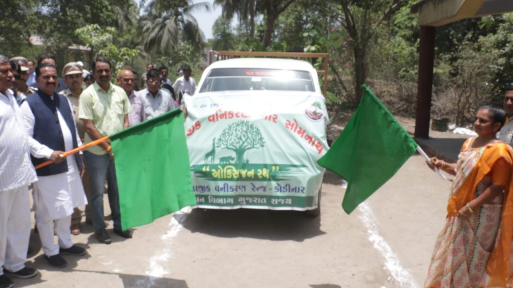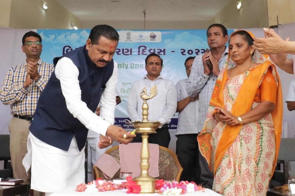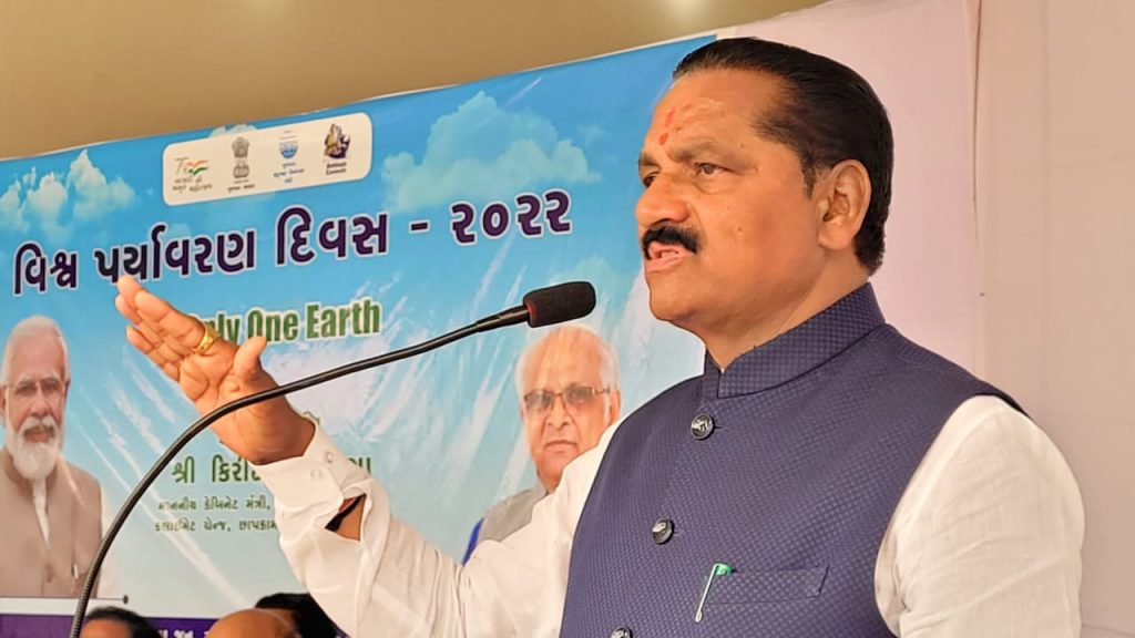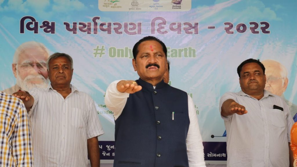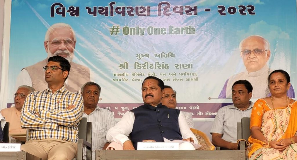 કેબિનેટ મંત્રી શ્રી વન અને પર્યાવરણ વિભાગ, ક્લાઈમેટ ચેન્જ વિભાગ, છાપકામ અને લેખન સામગ્રી વિભાગ ના કેબિનેટ મંત્રી શ્રી કિરીટસિંહ રાણાના અધ્યક્ષ સ્થાને વિશ્વ પર્યાવરણ દિવસ નિમિત્તે પી.સી જૈન ક્લબ, અંબુજાનગર, કોડીનાર ખાતે વિશ્વ પર્યાવરણ દિવસ-2022ની ઉજવણી કરવામાં આવી હતી. ‘ઓન્લી વન અર્થ’ થીમ સાથે યોજાયેલા આ કાર્યક્રમમાં વૃક્ષારોપણ સહિત પર્યાવરણના જતન ઉપરાંત કુદરત સાથે સંતુલનમાં જીવન જીવવા સૌને અપીલ કરવામાં આવી હતી.આ તકે પ્રાસંગિક ઉદ્બોધન અને સ્વાગત અંબુજા સિમેન્ટના યુનિટ હેડ શ્રી રાજીવ જૈને કર્યુ હતું. ઉસ્થીત માનવ મેદની ને સંબોધતા રાજયસરકાર ના વન અને પર્યાવરણ વિભાગના કેબિનેટ મંત્રી શ્રી કિરીટસિંહ રાણાએ ક્લાઈમેટ ચેન્જ અંગે સમજ આપતા સૌને જણાવ્યું હતું કે, પર્યાવરણ પ્રત્યેની આપણી સૌની સહિયારી જવાબદારી છે. ગુજરાત સરકાર પણ આ બાબતે જાગૃત છે જેથી સમગ્ર ગુજરાતમાં માત્ર એકજ વખત ઉપયોગમાં આવે એવું સિંગલ યુઝ પ્લાસ્ટિક ન વાપરવા પર ભાર આપવામાં આવે છે. માનવ સર્જિત પ્રદૂષણ ને કારણે ક્લાઈમેટ ચેન્જ હેઠળ ધરખમ ફેરફાર થયાં છે. જેના માટે આપણે બધા જ જવાબદાર છીએ. કુદરતી ઋતુચક્ર ને મનુષ્યએ જ ખોરવ્યું છે. ત્યારે પ્રકૃતિ ને સ્વસ્થ કરવી આપણાં બધાની સહિયારી ફરજ છે. આપણે તમામ ક્ષેત્રમાં પર્યાવરણની જાળવણીનો સંકલ્પ કરીએ અને વડાપ્રધાન શ્રીના ‘સૌનો સાથ, સૌનો વિકાસ અંતર્ગત’ વાતાવરણને શુદ્ધ કરવામાં આપણો ફાળો આપીએ અને પર્યાવરણનું જતન થાય તે પણ ધ્યાનમાં રાખીએ. જિલ્લા પંચાયતના પ્રમુખ શ્રીમતિ રામીબહેન વાજાએ પોતાના ઉદબોધનમાં જણાવ્યું હતું કે, ‘જેમ ટીપે ટીપે સરોવર ભરાય તેમ નાના છોડમાંથી વટવૃક્ષ બને છે. આ રીતે સહયારા પ્રયાસથી જ વૃક્ષોનું જતન કરવાથી પ્રદૂષણની સમસ્યા ઓછી થશે. આજે આપણે વૃક્ષ વાવીશું તો તેનો છાંયડો આવનાર પેઢીને મળે તેવી શુભેચ્છાઓ’ આ ઉપરાંત ગુજરાત પોલ્યુશન કંટ્રોલ બોર્ડ દ્વારા સ્વચ્છતા થકી પર્યાવરણની જાળવણી વિષય પર તૈયાર કરાયેલી શોર્ટ ફિલ્મ દર્શાવવામાં આવી હતી અને આઝાદીના અમૃત મહોત્સવ અંતર્ગત ગામડાઓમાં પર્યાવરણ અંગે સ્વચ્છતા અને જાગૃતિ કેળવીને પ્રદૂષણ મુક્તિ અંગે કામગીરી કરવા બદલ 10 ગામના સરપંચોને તેમજ ઉધોગ કંપનીના એન્વાયર્મેન્ટ હેડને મહાનુભાવોના હસ્તે પ્રમાણપત્ર એનાયત કરવામાં આવ્યા હતાં.મંત્રીશ્રી કિરીટસિંહ રાણા અને અન્ય મહાનુભાવો દ્વારા ઓક્સિજન રથને લીલી ઝંડી આપી પ્રસ્થાન કરાવાયું હતું. સાથે જ કાર્યક્રમ સ્થળ નજીક મંત્રીશ્રી અને અન્ય મહાનુભાવો દ્વારા વૃક્ષારોપણ કરવામાં આવ્યું હતું આ તકે ગીર સોમનાથ જિલ્લા ભાજપ પ્રમુખ શ્રી માનસિંહભાઈ પરમાર, પૂર્વ સાંસદ શ્રી દિનુભાઈ સોલંકી, પૂર્વ ધારાસભ્ય શ્રી જેઠાભાઈ સોલંકી, શ્રી પી.એસ.ડોડીયા, શ્રી સુભાષભાઈ ડોડીયા, શ્રી ભ