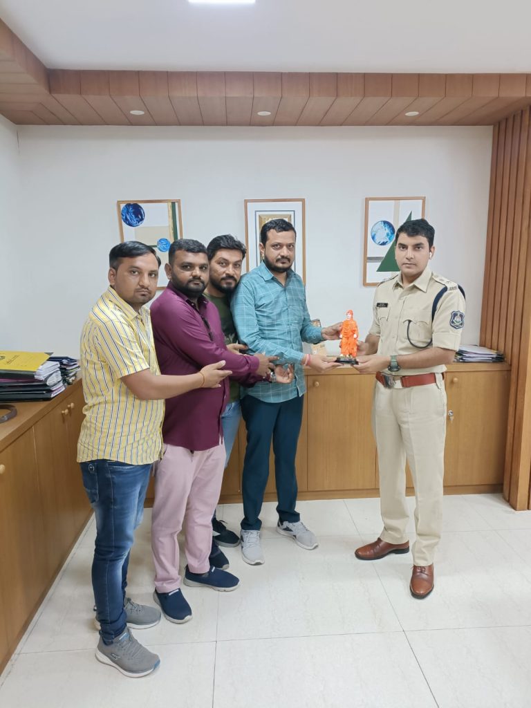મોરબી તાલુકા ના ધુંટુ ગામે 7 વર્ષ ના બાળક ના અપહરણ ના બનાવ મા મોરબી એસ. પી. શ્રી ત્રિપાઠી સાહેબ ના માર્ગદ્દર્શન હેઠળ મોરબી તાલુકા પો. ઇન્સ્પેક્ટર વિરલ પટેલ સાહેબ તથા એલ.સી. બી પી.આઇ ગોઢાણીયા સાહેબે જુદી જુદી ટીમ બનાવી સધન તપાસ આદરતા 28 કલાક મા માસુમ બાળક અને આરોપી ને પકડી 7 વર્ષ ના બાળક પર્વ વિડજા ને હેમખેમ ધરે પહોચાળવા બદલ SP રાહુલ ત્રિપાઠી સાહેબ ને અભિનંદન આપી બિરદાવતા ગુજરાત પોલીસ પ્રત્યે ગૌરવ ની લાગણી વ્યક્ત કરતા મોરબી તાલુકા યુવા ભાજપ પ્રમુખ નિતેષ ભાઈ બાવરવા , મહામંત્રી આંનદ અગોલા , ઉપપ્રમુખ પિન્ટુ સોરીયા & રાજેશ શેરશીયા હાજર રહ્યા હતા