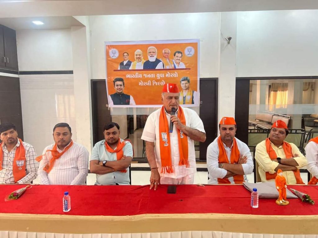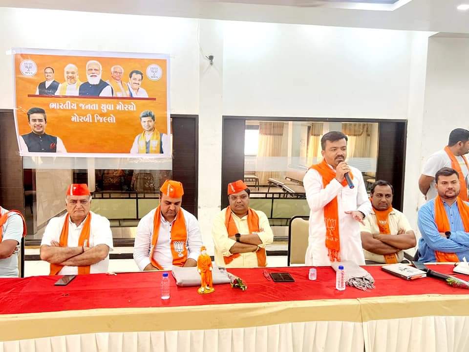મોરબી જીલ્લા ના મોરબી ખાતે આગામી વિવિધ કાર્યક્રમ અંતર્ગત જીલ્લા યુવા મોરચા ની બેઠક યોજવામા આવી.જેમાં આગામી સંગઠનાત્મક કાર્યક્રમો અંગે વિસ્તૃત ચર્ચા-વિચારણા કરવામાં આવી . આ પ્રસંગે ગુજરાત પ્રદેશ યુવા મોરચા ના મહામંત્રીશ્રી ડૉ.નરેશભાઈ દેસાઈ, જીલ્લા ભાજપ ના પ્રમુખ શ્રી દુર્લભજીભાઈ, જીલ્લા ભાજપ મહામંત્રી શ્રી રણછોડભાઈ દલવાડી, જિલ્લા યુવા મોરચા ના પ્રભારી શ્રી રામભાઇ ગઢવી અને જીલ્લા યુવા મોરચાના મહામંત્રી તપનભાઈ દવે, જયદીપભાઈ હુંબલ, રાજકોટ જિલ્લા ના પ્રભારી શ્રી મહાવીરસિંહ જાડેજા, તાલુકા પંચાયતના કારોબારી ચેરમેન રાકેશભાઈ કાવર, અશોકભાઈ દેસાઈ, પ્રદેશ કારોબારી સભ્યશ્રીઓ તથા જીલ્લા ની મુખ્ય ટીમ ,મંડળના અધ્યક્ષ, મહામંત્રીશ્રીઓ તથા જીલ્લાના હોદ્દેદારશ્રીઓ ઉપસ્થિત રહ્યા હતા…