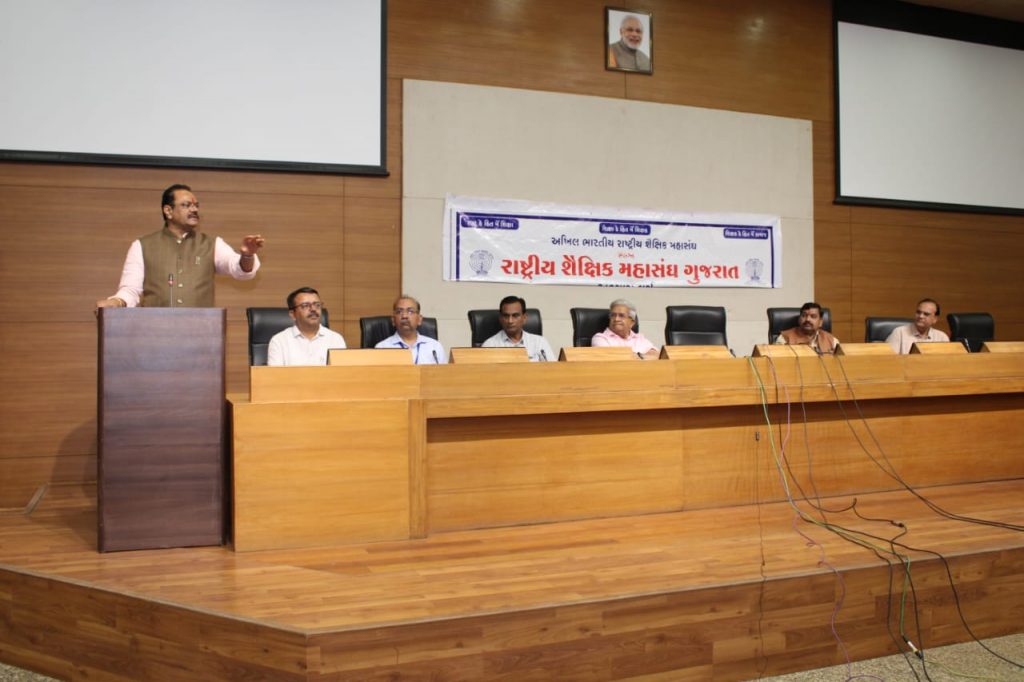 રાજ્યના શિક્ષકોના વર્ષો જુના પ્રશ્નોના એક સાથે ઉકેલ લાવી ઐતિહાસિક નિર્ણય કરવા બદલ આજે રાષ્ટ્રીય શૈક્ષિક મહાસંઘ ગુજરાત (માધ્યમિક, ઉચ્ચતર માધ્યમિક તથા આચાર્ય સંવર્ગ)ના હોદ્દેદારો તેમજ વિવિધ જિલ્લાઓમાંથી આવેલા શિક્ષકો દ્વારા સ્વર્ણિમ સંકુલ ૧ ખાતે રાજયના શિક્ષણ મંત્રી શ્રી જીતુભાઈ વાઘાણી, નાણાં મંત્રી શ્રી કનુભાઈ દેસાઈ તથા શિક્ષણ રાજ્ય મંત્રી શ્રી કુબેરભાઈ ડિંડોરનું મોમેન્ટો, શાલ, પુસ્તક તેમજ પુષ્પગુચ્છથી સન્માન કરવામાં આવ્યું હતું. આ સન્માન કાર્યક્રમ અવસરે શિક્ષણ મંત્રી શ્રી જીતુભાઈ વાઘાણીએ જણાવ્યું કે, મુખ્યમંત્રી શ્રી ભૂપેન્દ્રભાઈ પટેલના માર્ગદર્શન હેઠળ અને નાણાં મંત્રી શ્રી કનુભાઈ પટેલના હકારાત્મક અભિગમને કારણે માધ્યમિક સંવર્ગના ૨૫ થી ૩૦ વર્ષ જૂના પડતર પ્રશ્નનો ઉકેલ લાવવામાં સફળતા મળી છે. શિક્ષકો-અમારો પરિવાર છે અને પરિવારના વાજબી તમામ પ્રશ્નનો ઉકેલ લાવવો અમારી જવાબદારી છે. શિક્ષકોના વિવિધ પડતર પ્રશ્નોના નિરાકરણ માટે લેવાયેલા આ નિર્ણયથી રૂ. ૪૦૦ કરોડનો વધારાનો બોજ વહન કરવો પડશે, જો કે ગુજરાતનું આવતી કાલનું ભવિષ્ય એવા વિદ્યાર્થીઓને જ્ઞાન – શિક્ષણ આપતા રાજ્યના લાખો શિક્ષકો અને તેમના પરિવારને જે લાભ થશે તે અકલ્પનીય હશે. આ નિર્ણયથી માત્ર શિક્ષકોને જ નહિ, વિદ્યાર્થીઓને પણ ફાયદો થશે. રાજ્યના શિક્ષકોની ઘટ દૂર થતાં ક્વોલિટી એજ્યુકેશન મળતું થશે. મંત્રીશ્રીએ ઉમેર્યું કે, કોઈપણ સમસ્યાનું સમાધાન – એ દેશના વડાપ્રધાન શ્રી નરેન્દ્રભાઇ મોદી તેમજ કેન્દ્રિય ગૃહ મંત્રી શ્રી અમિતભાઈ શાહની કાર્યપ્રણાલી રહી છે. તેમની આ જ કાર્યપ્રણાલી અપનાવીને મુખ્યમંત્રી શ્રી ભૂપેન્દ્ર પટેલ ના નેતૃત્વ હેઠળ ચાલતી આ સરકાર હજુ પણ કોઈ નાની-મોટી સમસ્યાઓ હશે, તો સંવાદ કરીને તેને દૂર કરવા પ્રયત્ન કરશે. આ પ્રસંગે રાષ્ટ્રીય શૈક્ષિક મહાસંઘ ગુજરાતના અધ્યક્ષ શ્રી ભીખાભાઇ પટેલે રાજ્યના મુખ્યમંત્રી તેમજ શિક્ષણ મંત્રીશ્રીઓ અને નાણામંત્રી મંત્રીશ્રીનો આભાર માની કહ્યું હતું કે, રાજ્યના શિક્ષકોના ૯૮ ટકા પ્રશ્નોનો ઉકેલ રાજ્ય સરકારે લાવી દીધો છે. એક સાથે આટલા બધા પ્રશ્નોના ઉકેલને ઐતિહાસિક નિર્ણય ગણાવી તેમણે કહ્યું કે, રાજ્યના શિક્ષકો માટે આ સરકારે કરેલી ચિંતાઓને રાષ્ટ્રીય શૈક્ષિક મહાસંઘ ક્યારેય ભૂલશે નહીં.