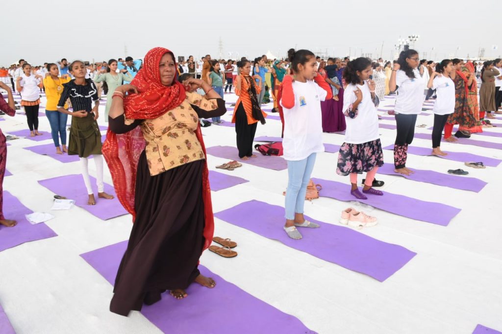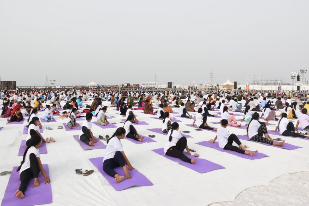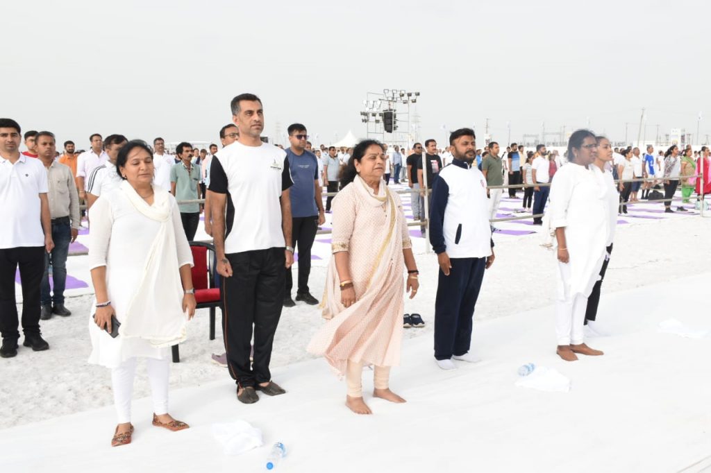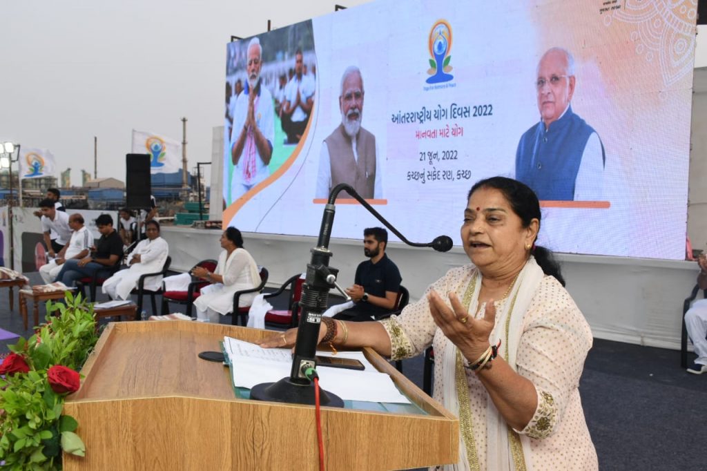 આઠમા આંતરરાષ્ટ્રીય યોગ દિવસ નિમિત્તે વિશ્વના ૧૯૩ દેશો સાથે મૈસુર પેલેસ, મૈસુરૂ ,કર્ણાટકથી વડાપ્રધાન શ્રી નરેન્દ્રભાઈ મોદી અને સાબરમતી રિવરફ્રન્ટ અમદાવાદ ખાતેથી મુખ્યમંત્રી શ્રી ભૂપેન્દ્રભાઇ પટેલે રાજ્યકક્ષાનો અને કચ્છના સફેદ રણ ધોરડો ખાતે જિલ્લા કક્ષાનો યોગ દિવસ વિધાનસભા અધ્યક્ષા શ્રી નીમાબેન આચાર્યની અધ્યક્ષતામાં યોજાયો હતો. યોગપ્રેમીઓને સંબોધતા વડાપ્રધાન શ્રી નરેન્દ્રભાઈ મોદીએ જણાવ્યું હતું કે, યોગ વૈશ્વિક પર્વ બની ગયો છે. યોગ વ્યક્તિ માટે નહીં યોગ સંપૂર્ણ માનવતા માટે છે. આ વર્ષે યોગની થીમ ,માનવતા માટે યોગ છે. આ માટે હું સંયુક્ત રાષ્ટ્રસંઘ અને બધા દેશોનો દેશવાસીઓ તરફથી આભાર માની દેશવાસીઓને પણ અભિનંદન પાઠવું છું.