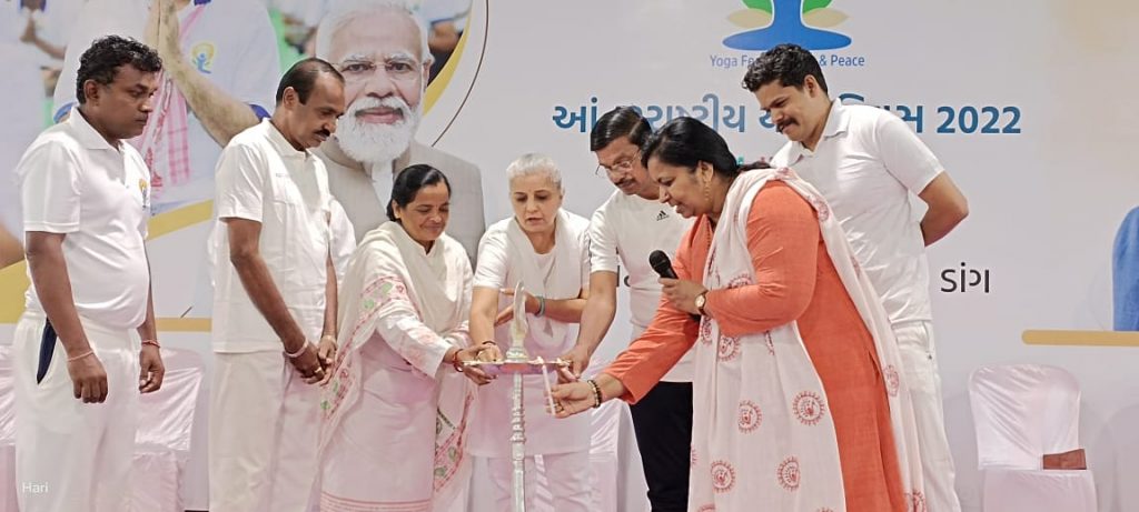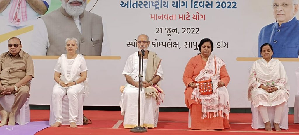 ગુજરાતના એકમાત્ર ગિરિમથક એવા સાપુતારા ખાતે પણ ફૂલગુલાબી વાતાવરણ વચ્ચે ‘યોગ’ નો નાદ ગુંજ્યો હતો. ‘વિશ્વ યોગ દિવસે’ સાપુતારાના સ્પોર્ટસ કોમ્પ્લેકક્ષ ખાતે સર્વશ્રી રમેશભાઈ ઓઝા, વાસુર્ણાના સુશ્રી હેતલ દીદી, હોટેલ ઓનર્સ એસોસીએશનના સેક્રેટરી શ્રી તુકારામ કરડીલે સહિત, જિલ્લા વહિવટી તંત્રના અધિકારીઓની ઉપસ્થિતિ વચ્ચે, પતંજલીના પ્રિતીબેન ભાવસારે ‘યોગ નિદર્શન’ કરાવ્યુ હતું. ગિરિમથકની જુદી જુદી શૈક્ષણિક સંસ્થાઓના વિધાર્થીઓ તથા સાપુતારાના સ્થાનિક રહેવાસીઓએ, ‘આઝાદીના અમૃત મહોત્સવ’ નિમિતે દેશના પસંદ થયેલા ૭૫ આઈકોનિક સ્થળો પૈકીના એક એવા, ગિરિમથક સાપુતારા ખાતે ‘યોગ’ નો નાદ ગુંજતો કરી, વિશ્વ યોગ દિવસની ઉજવણી કરી હતી.