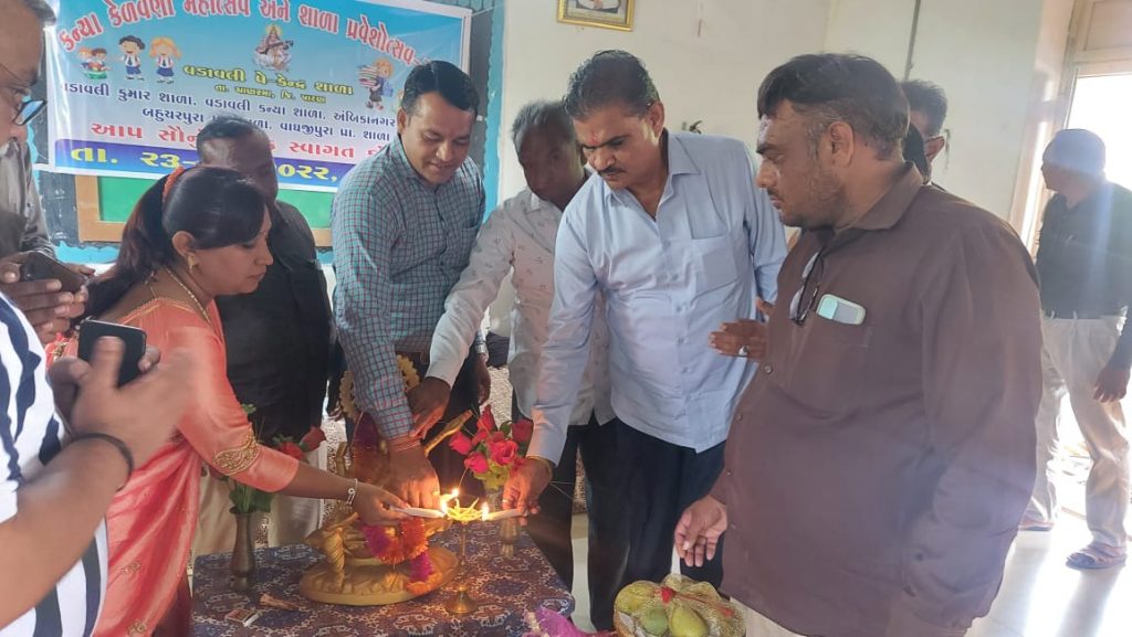 ગુજરાત સરકાર દ્વારા ચાલી રહેલા શાળા પ્રવેશોત્સવ કાર્યક્રમ અંતર્ગત આજરોજ ચાણસ્મા વિધાનસભા વિસ્તારના ચાણસ્મા શહેર ખાતે બી.આર.સી.ભવન માં શાળા પ્રવેશોત્સવ કાર્યક્રમ યોજાયો એ પ્રસંગે વિસ્તારના ધારાસભ્યશ્રી દિલીપકુમાર ઠાકોર દ્વારા કાર્યક્રમ નો શુભારંભ કરવામાં આવ્યો હતો તથા ચાણસ્મા તાલુકાના વડાવલી તથા ધરનોધરડા ગામે પણ શાળા પ્રવેશોત્સવ કાર્યક્રમ યોજાયો હતો જે પ્રસંગે માનનીય ધારાસભ્ય શ્રી દિલીપ કુમાર ઠાકોર ઉપસ્થિત રહી કાર્યક્રમ નો શુભારંભ કરાવ્યો હતો આ પ્રસંગે ચાણસ્મા તાલુકા વિકાસ અધિકારી શ્રી રશ્મિબેન ઠાકોર તાલુકા ભાજપના પ્રમુખ શ્રી ઉપેન્દ્ર પટેલ તથા શાળાના સ્ટાફ મિત્રો ગામના વડીલો બાળકો અને વાલીઓ ઉપસ્થિત રહ્યા હતા આ પ્રસંગે ધારાસભ્યશ્રી દ્વારા શિક્ષણને લગતી કોઈપણ જરૂરિયાત શાળા ને હોય તો તાત્કાલિક જાણ કરવા માટે કહ્યું હતું કાર્યક્રમ દરમિયાન માનનીય ધારાસભ્ય શ્રી દ્વારા શાળામાં પ્રવેશ કરતા વિદ્યાર્થીઓને આશીર્વાદ આપ્યા હતા