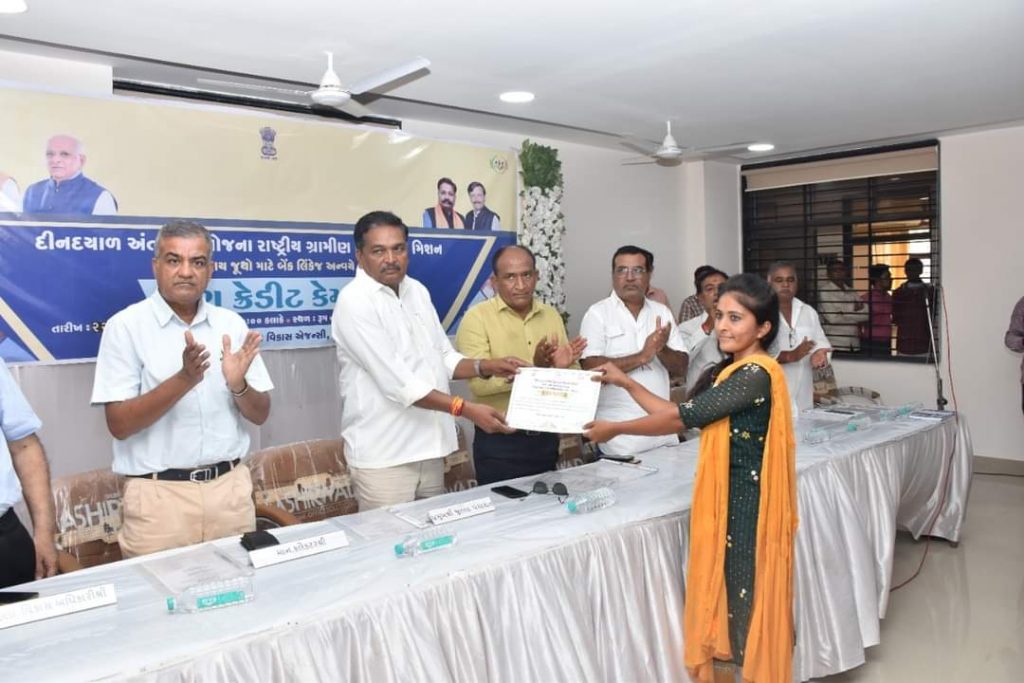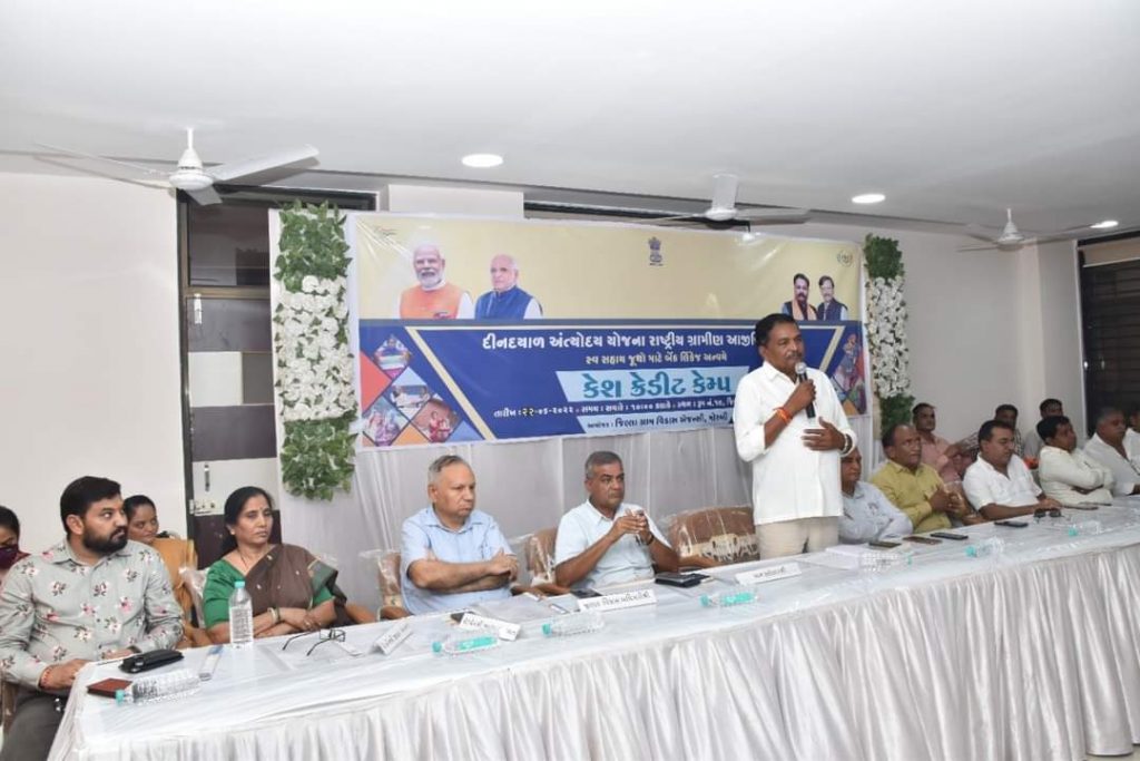 દીનદયાળ અંત્યોદય યોજના રાષ્ટ્રીય ગ્રામીણ આજીવીકા મિશન અંતર્ગત ગુજરાત લાઇવલીહુડ પ્રમોશન કંપની લી. દ્વારા આયોજિત સ્વ-સહાય જૂથો માટે બેંક લિંકેજ અન્વયે કેશ ક્રેડિટ કેમ્પનું આયોજન જિલ્લા પંચાયત કચેરી ખાતે જિલ્લા પંચાયત પ્રમુખ શ્રી ચંદુભાઇ શિહોરાના અધ્યક્ષસ્થાને કરવામાં આવ્યું. જેમાં ૨૪૦ સખી મંડળો ને કુલ રૂ.૨૬૧ લાખ રકમ ની સીસી લોન મંજૂર કરવામાં આવી તેમજ ૨૨૩ સખી મંડળો ને રૂ.૩૪૪ લાખ રકમ ની સીસી લોન ધિરાણ કરવામાં આવેલ. આ કાર્યક્રમમાં જિલ્લા ભાજપ પ્રમુખ શ્રી દુર્લભજીભાઈ દેથરીયા, જિલ્લા પંચાયત ના કારોબારી અધ્યક્ષ શ્રી જયંતિભાઈ પડસુંબિયા,સામાજિક ન્યાય સમિતિ ના ચેરમેન શ્રીમતિ હંસાબેન પારેઘી,ભાજપ અગ્રણી શ્રી જીગ્નેશભાઈ કૈલા,શ્રી વાઘજીભાઈ ડાંગરોચા,શ્રી નથુભાઈ કડીવાર,શ્રી કિશોરભાઈ ચીખલીયા,આરોગ્ય સમિતિ ચેરમેન હીરાભાઈ ટમારીયા,શિક્ષણ સમિતિ ચેરમેન પ્રવીણભાઈ સોનગ્રા,, રવજીભાઈ પરમાર,કલેકટર શ્રી જે.બી.પટેલ,જિલ્લા વિકાસ અધિકારી શ્રી પી.જે. ભગદેવ,નાયબ જિલ્લા વિકાસ અધિકારી શ્રીમતિ ઇશિતાબેન મેર,તેમજ સ્વસહાય જૂથોના બહેનો ઉપસ્થિત રહ્યા હતા.