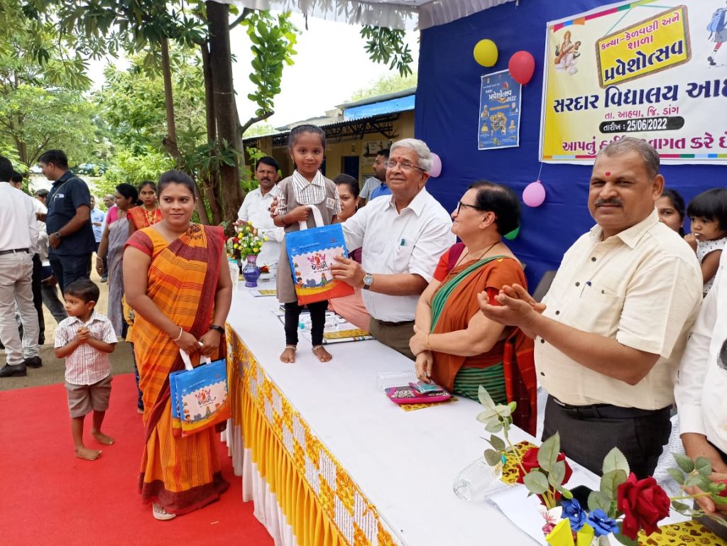 આહવા: તા: ૨૫: ડાંગ જિલ્લાના મુખ્ય વહીવટી મથક આહવાની આંબાપાડા અને સરદાર પ્રાથમિક શાળા ખાતે ૨૧ કુમાર, અને ૨૮ કન્યા મળી કુલ ૪૯ બાળકોને શાળા પ્રવેશ કરાવતા રાજ્યના નાણાં અને ઊર્જા મંત્રી શ્રી કનુભાઈ દેસાઈએ, પ્રવેશ પામતા બાળકોને આશીર્વચન પાઠવ્યા હતા.
