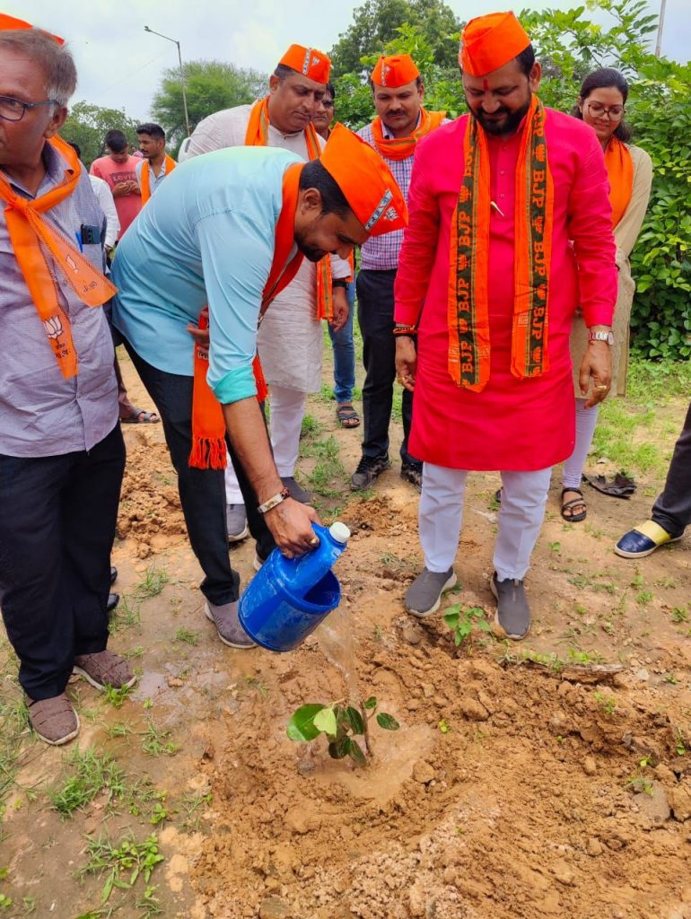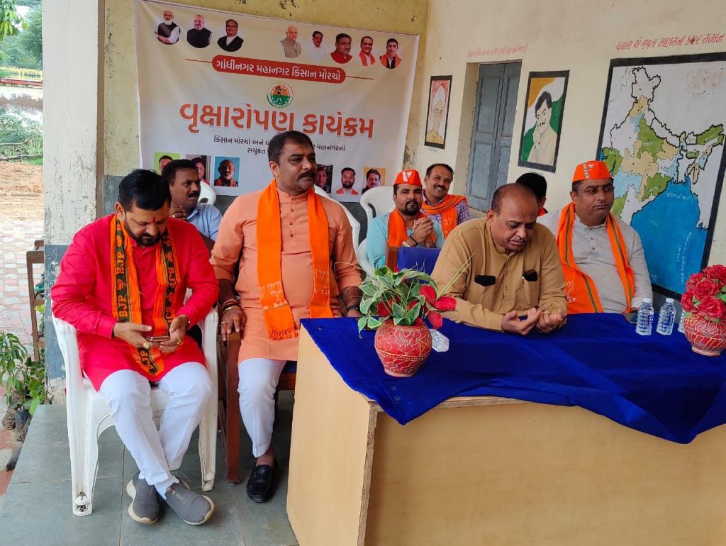 ગાંધીનગર મહાનગર કિસાન મોરચો અને વોર્ડ નં.૧૧ ભાજપાના સંયુકત ઉપક્રમે ભાટ ગામમાં હુડકો પ્રાથમિક શાળા ખાતે વૃક્ષારોપણનો કાર્યક્રમ યોજાયો. જેમાં કિસાન મોરચાના રાષ્ટ્રીય ઉપાધ્યક્ષશ્રી બાબુભાઈ જેબલીયાજી, મહાનગર ભાજપા પ્રમુખશ્રી રૂચિરભાઈ ભટ્ટ, મેયરશ્રી હિતેશભાઈ મકવાણા, ડે.મેયરશ્રી પ્રેમલસિંહ ગોલ, મહામંત્રીશ્રી કનુભાઈ દેસાઈ, શ્રી ગૌરાંગભાઈ પટેલ, મહાનગર ભાજપા કિસાન મોરચાના પદાધિકારીઓ, વોર્ડ નં.૧૧ના કોર્પોરેટરશ્રીઓ, સ્થાનિક સંગઠનના હોદ્દેદારો, કાર્યકરો ઉપસ્થિત રહ્યા હતા.
