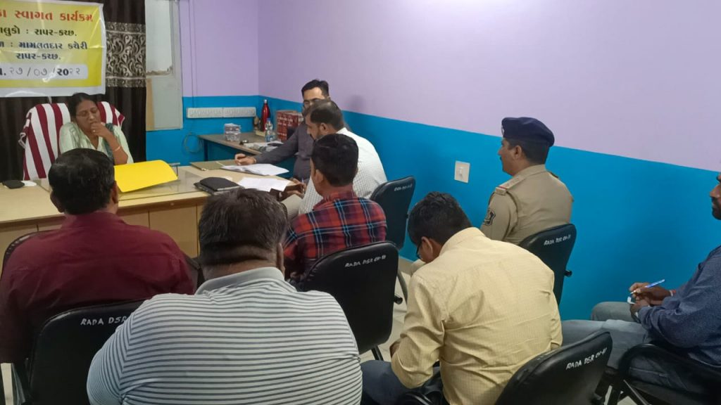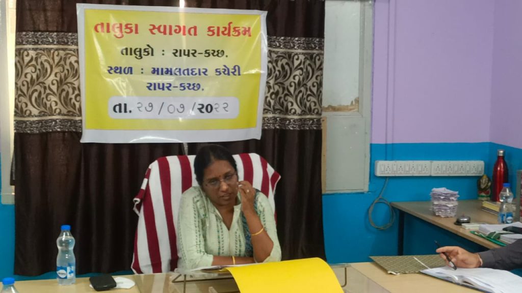 જિલ્લા કલેકટરશ્રી પ્રવિણા ડી. કે.ની અધ્યક્ષતામાં આજરોજ રાપર તાલુકા મામલતદાર કચેરી ખાતે તાલુકા સ્વાગત કાર્યક્રમ યોજાયો હતો.આ સ્વાગત કાર્યક્રમમાં આઠ પ્રકારના જુદા જુદા વિભાગોના પ્રશ્નો અંગે ચર્ચા કરવામાં આવી હતી .જેમાં આરોગ્ય –પ્રાથમિક આરોગ્ય કેન્દ્રો, એસટી, નગરપાલિકા, બાંધકામ વિભાગ, પીજીવીસીએલ, આરોગ્ય -પંચાયત સહિતના પ્રશ્ર્નો અંગે રજૂઆત કરવામાં આવી હતી. જે પ્રશ્નોને સંબંધિત અધિકારીઓને તાત્કાલિક પ્રશ્ન નિકાલ કરવા માટે સૂચિત કરવામાં આવ્યા હતા. આ કાર્યક્રમમાં જિલ્લા કલેકટર ઉપરાંત ભચાઉ પ્રાંત અધિકારીશ્રી સંજય ચૌધરી, મામલતદાર કે. આર ચૌધરી, પોલીસ ઈન્સ્પેક્ટર વી. કે. ગઢવી, બાંધકામના ભરત નાથાણી ,પીજીવીસીએલના નાયબ કાર્યપાલક ઈજનેરશ્રી આર. કે. શર્મા, તાલુકા હેલ્થ ઓફિસર ડો. મોતીલાલ રોય, ઈન્ચાર્જ ચીફ ઓફિસર નવઘણભાઈ કડ, ડેપો મેનેજરશ્રી વિશાલ ગોહિલ વગેરે ઉપસ્થિત રહ્યા હતા. સ્વાગત કાર્યક્રમ બાદ કલેકટરશ્રી એ રાપર પોલીસ મથકની સર્પ્રાઇઝ વિઝીટ લીધી હતી તેમજ પોલીસ સ્ટેશનમાં થતી કામગીરી અંગે સમીક્ષા કરવામાં આવી હતી. પીઆઈશ્રી વી. કે .ગઢવીએ પોલીસની ફરજો, રેકોર્ડ અને કામગીરી અંગે વિગતો આપી હતી. ત્યાર બાદ કલેકટરશ્રીએ બેલા બીએસએફના ચેક પોસ્ટની મુલાકાત લીધી હતી . તેમણે આ તકે સરહદી જવાનો સાથે ચર્ચા કરી હતી. આ મુલાકાતમાં ભચાઉ પ્રાંત અધિકારીશ્રી સંજય ચૌધરી ,રાપર મામલતદારશ્રી ચૌધરી ,રાપર પીઆઇશ્રી ગઢવી, બાલાસર પીએસઆઇશ્રી ડી. એલ. ખાચર, નાયબ મામલતદાર યુવરાજસિંહ ગોહિલ અન્ય સ્ટાફ સહિત ઉપસ્થિત રહ્યા હતા