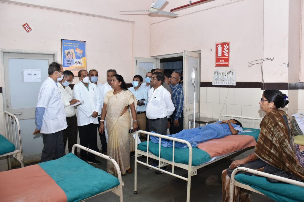 આ પ્રસંગે અધિક મુખ્ય જિલ્લા આરોગ્ય અધિકારીશ્રી ડૉ. આર.આર.ફૂલમાલી, સીડીએમઓ શ્રી ડૉ.કશ્યપ બૂચ, હોસ્પિટલ સુપ્રિટેન્ડેન્ટ શ્રી ડૉ.કે.કે.રોય, સિનિયર ડોક્ટર શ્રી કે.જી.વૈષ્ણવ અને પ્રણવ વૈષ્ણવ, ટીએચઓ શ્રી કે.પી.પાસવાન, ડીએમઓ શ્રી ડૉ.પ્રકાશ, જિલ્લા પ્રોજેક્ટ કોર્ડિનેટર શ્રી ડૉ.વિપૂલ દેવમૂરારી અને બિપિન આહિર સહિત હોસ્પિટલના સૌ સ્ટાફકર્મીઓ મુલાકાત દરમિયાન સાથે રહ્યા હતા.