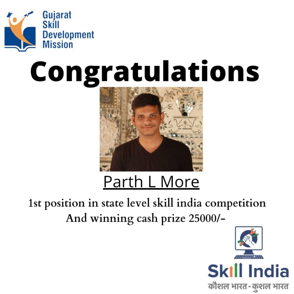 રાષ્ટ્રીય સ્તરની સ્કીલ ઇન્ડિયા કોમ્પીટીશન પરીક્ષામાં આઇ.ટી.આઇ. સ્તરે વડોદરાના પાર્થ મોરેનો દબદબો