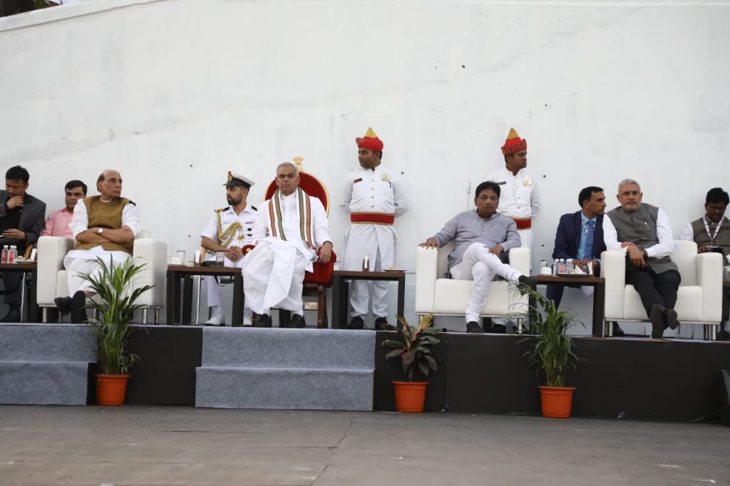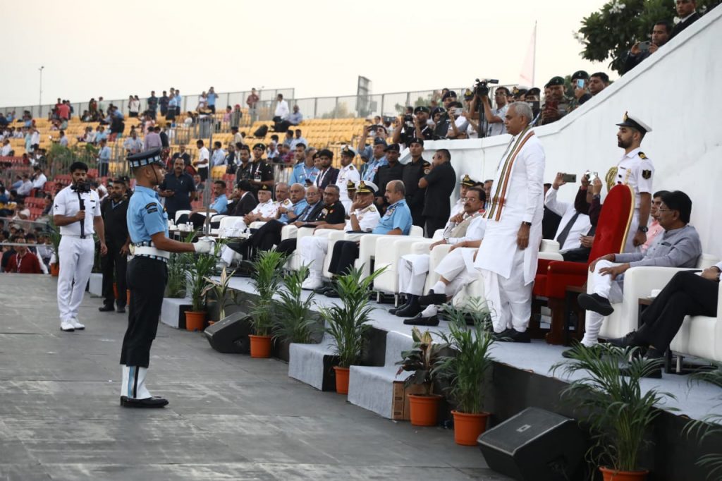 ગુજરાત ખાતે 18 થી 22 ઓક્ટોબર દરમિયાન યોજાનાર ડિફેન્સ એક્સ્પો-2022 અંતર્ગત આજે સાબરમતી રિવરફ્રન્ટ ખાતે એર શૉ યોજાયો હતો. આ એર શો માં જલ સેના, થલ સેના, વાયુ સેના અને DRDO ના વિવિધ દિલધડક સંરક્ષણ કરતબો તેમજ આધુનિક ઉપકરણો પ્રદર્શિત કરવામાં આવ્યા હતા. ડિફેન્સ ક્ષેત્રે આત્મનિર્ભર ભારતની ઓળખ આપતાં અનેકવિધ અત્યાધુનિક સંરક્ષણ ઉપકરણો આ પ્રસંગે પ્રદર્શિત કરવામાં આવ્યા હતા. ભારતને ડિફેન્સ મેન્યુફેકચરિંગ હબ તરીકે પ્રસ્થાપિત કરતા આ ઉપકરણો અને અત્યાધુનિક સંરક્ષણ યુક્તિ પ્રયુક્તિઓ જોઇને ઉપસ્થિત સૌ પ્રેક્ષકો અને આમંત્રિતો મંત્રમુગ્ધ થયા હતા. એર શોમાં મુખ્ય અતિથિ તરીકે કેન્દ્રીય સંરક્ષણ મંત્રી શ્રી રાજનાથ સિંહ તેમજ અતિથિ વિશેષ તરીકે ગુજરાતના રાજ્યપાલ શ્રી આચાર્ય દેવવ્રત ઉપસ્થિત રહ્યા હતા.