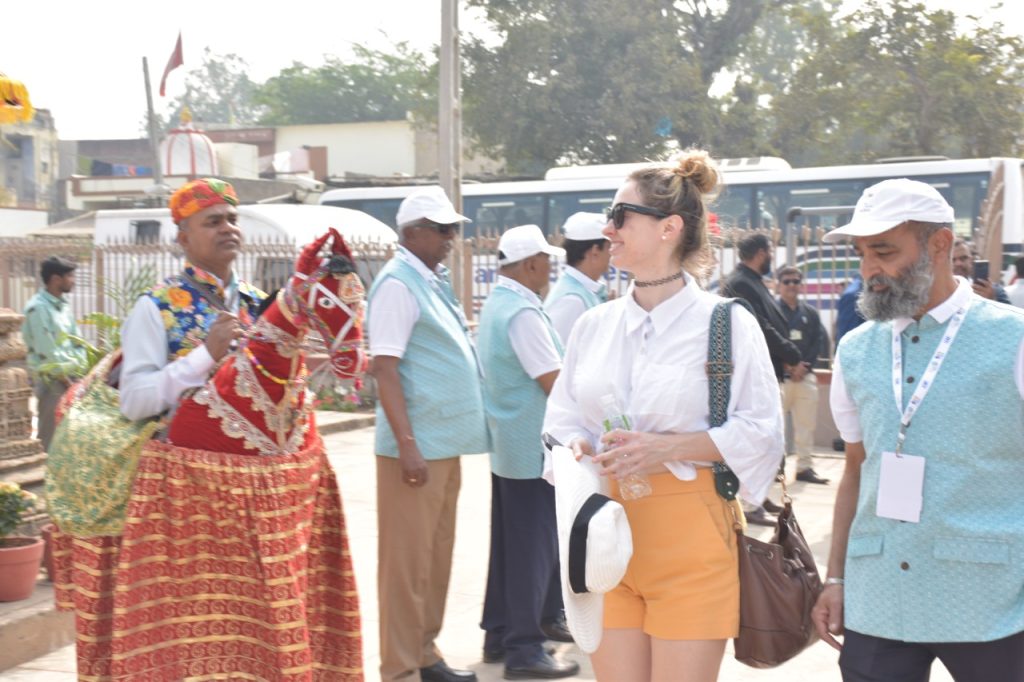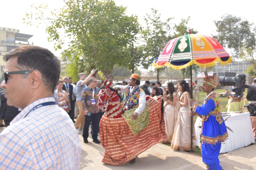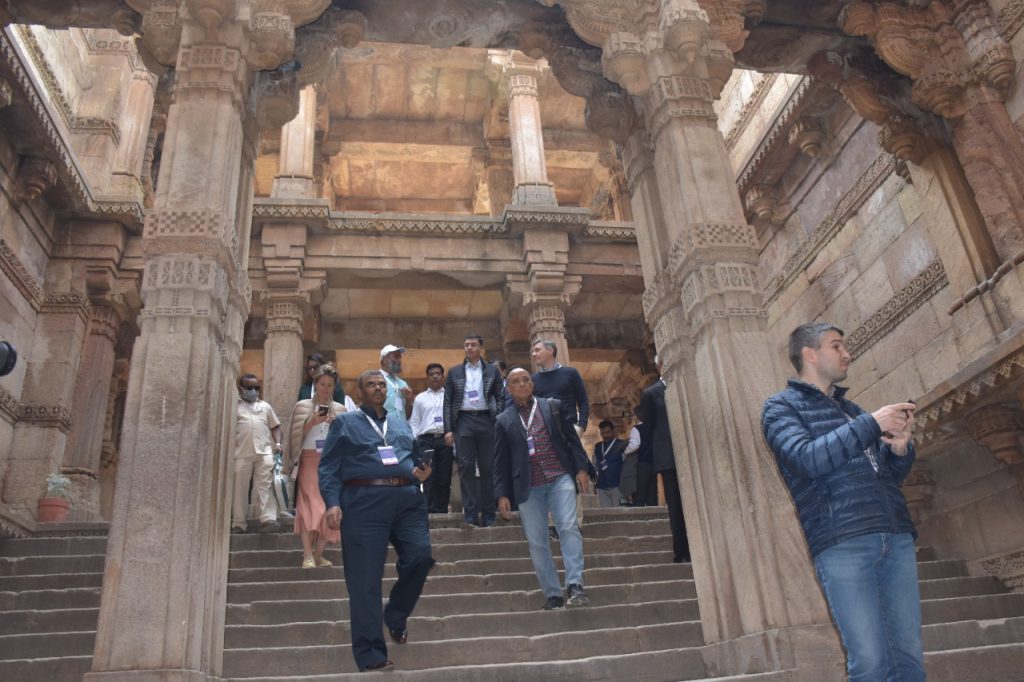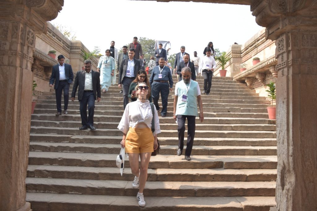 વડાપ્રધાન શ્રી નરેન્દ્રભાઈ મોદીના નેતૃત્વમાં ભારતને G-20 નું યજમાન પદ મળ્યું છે. ગાંધીનગરના મહાત્મા મંદિર ખાતે યોજાયેલી G-20 ની સૌ પ્રથમ B-20 ઈનસેપ્શન મીટમાં સહભાગી થવા ગુજરાતના મહેમાન બનેલા રાષ્ટ્રીય અને આંતરરાષ્ટ્રીય ડેલિગેટ્સે આજે ગાંધીનગરના અડાલજ સ્થિત સુપ્રસિદ્ધ રૂડાબાઈની વાવની મુલાકાત લીધી હતી. મહાનુભાવો અહીંની સ્થાપત્ય કલાકારીગીરીથી પ્રભાવિત થયા હતા. આ B-20 ઇન્સેપ્શન મીટમાં સહભાગી થઈ રહેલા ડેલિગેશન્સના સભ્યોને અડાલજની વાવ ખાતે આર્કિયોલોજીકલ સર્વે ઓફ ઇન્ડિયાના સુપરિન્ટેન્ડન્ટ શ્રી એ.એમ.વી. સુબ્રહ્મણીયમે આવકાર્યા હતા. અહીં શરણાઈના સૂર સાથે મહાનુભાવોનું પરંપરાગત સ્વાગત પણ કરવામાં આવ્યું હતું. આ અવસરે ગુજરાતની હસ્તકલા કારીગરીથી પણ મહાનુભાવો માહિતગાર થયા હતા.