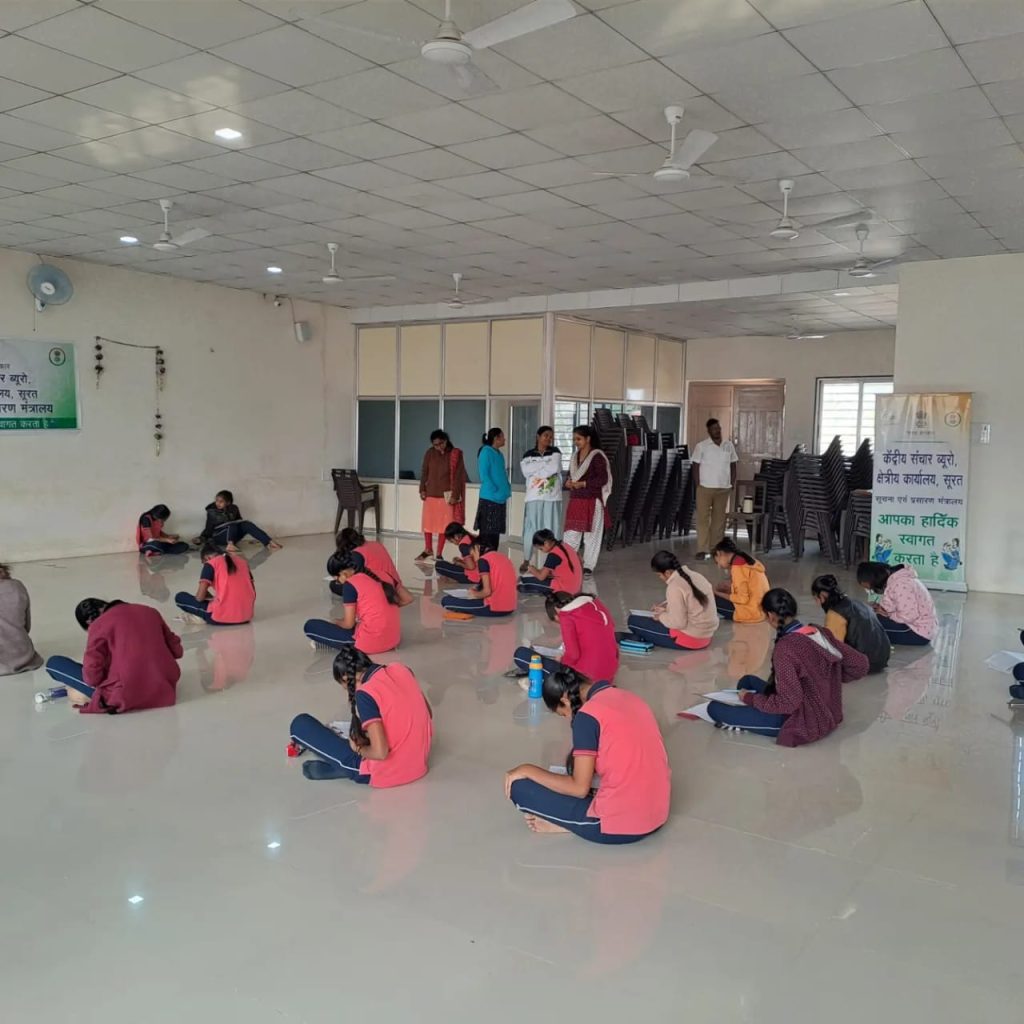 કેન્દ્રીય સંચાર બ્યૂરો, સુરત દ્વારા કાર્યક્રમની પૂર્વસંધ્યાએ કે. કે. કદમ કન્યા વિદ્યાલય ખાતે ચિત્રકળા અને નિબંધ સ્પર્ધાનું આયોજન કરાયું