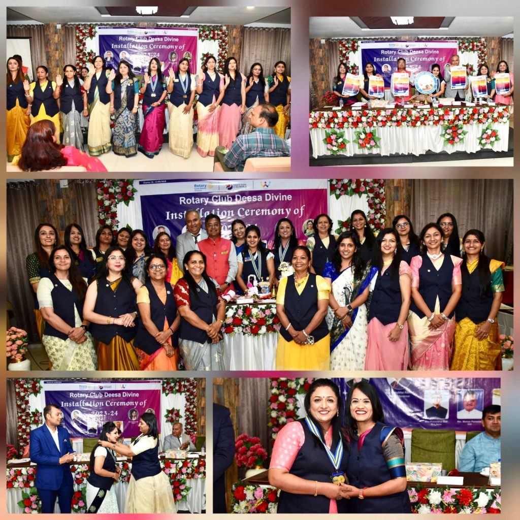 રોટરી ક્લબ ડિવાઈન ડીસા દ્વારા શપથગ્રહણ સમારોહ યોજાયો હતો જેમાં રોટે. ગિરિજાબેન અગ્રવાલે પ્રમુખ તરીકે શપથ લીધા અને રોટે.ડૉ વર્ષાબેન પટેને સેક્રેટરી તરીકે શપથ લીઘા અને બોર્ડના દરેક સભ્યોને પણ શપથ લેવડાવવામાં આવ્યા હતા.આ શપથ ઈનસ્ટોલેશન ઓફિસર રોટે.મોહનભાઇ પરાશર દ્વારા લેવડાવવામાં આવેલ. કાર્યક્રમમાં મુખ્ય મહેમાન તરીકે ડીસાના નવયુવાન અને લોકપ્રિય ઘારાસભ્ય શ્રીપ્રવિણભાઈ માળી હાજર રહયા. આસિસ્ટન્ટ ગવર્નર રોટે.મનોજ જોષી દ્વારા નવા રોટેરિયન મેમ્બર્સ ની શપથ વિધિ કરેલ. તમામ વક્તાઓએ રોટરી અને સમાજ સેવા વિશે વાત કરી હતી અને માત્ર મહિલા સભ્યોની આ સંસ્થાના કાર્યની પ્રશંસા કરી હતી. ડો.બિનલબેન ને ગીરીજાબેન અને હીનલબેન ને વર્ષાબેન્ કોલક પહેરાવીને સન્માનીત કર્યા, સમગ્ર કાર્યક્રમનું સંચાલન ડો.જીગીષાબેન અને ડો.અવનીબેન દ્વારા કરવામાં આવ્યુ. નવી ટીમને ઉપસ્થિત તમામ નગરજનો, પ્રમુખ/સેક્રેટરી, વિવિધ સંસ્થાઓના પ્રતિનિધિઓએ શુભેચ્છા પાઠવી હતી. પ્રમુખ ગિરિજાબેન અગ્રવાલને ફેમિલી,તથા વડીલોને શુભેચ્છાઓ આપી , પૂર્વ આસિસ્ટન્ટ ગવર્નર અને રોટરી ડિવાઇન ડીસા ક્લબના ચાર્ટર્ડ પ્રેસિડેન્ટ ડો. રીટાબેન પટેલે સાથે રહી “સહેલી બુલેટિન” નું વિમોચન કર્યું હતું. આ ક્લબના ક્લબ એડવાઈઝર રોટે.ડૉહિરેનભાઈ પટેલ ,રોટે પ્રવીણભાઈ વ્યાસ અને રોટે. કેયુરભાઈ ઠક્કર હાજર રહ્યા અને દરેક મેમ્બર્સને અભિનંદન પાઠવ્યા. દરેક રોટેરીયન બહેનોએ ખૂબ જ સાથ સહકાર આપી આ કાર્યક્રમને સફળ બનાવ્યો.