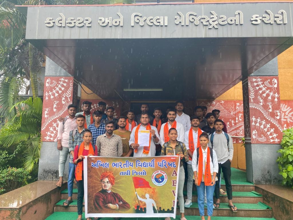 જેથી અખિલ ભારતીય વિદ્યાર્થી પરિષદ તાપી જિલ્લા દ્વારા તાપી જિલ્લા કલેકટર સાહેબ શ્રી ને આવેદનપત્ર આપવામાં આવ્યું હતું.