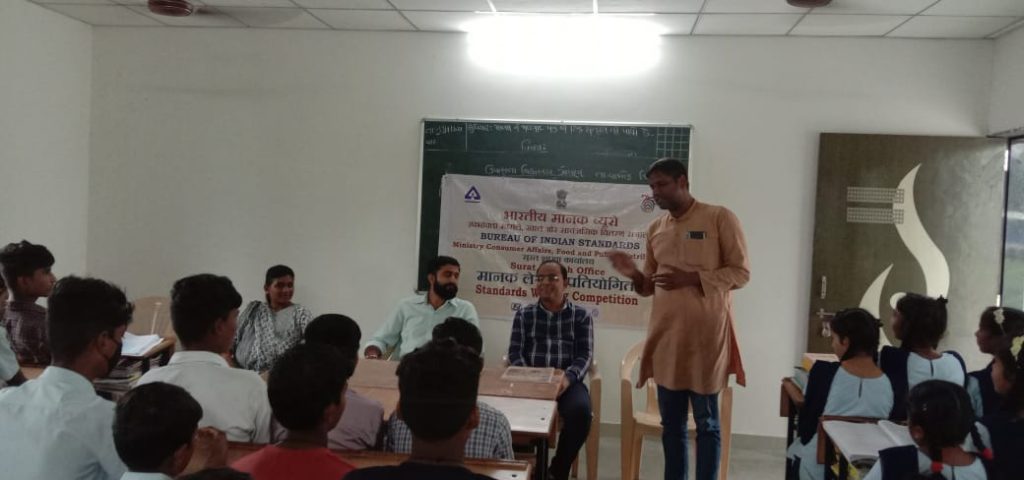 જી.સી પટેલ સ્કુલ ખાતે ભારતીય માનક બ્યુરો સુરત રીજીઓનલ ઓફીસ દ્રારા શાળાઓમાં બાળકોને સ્ટાન્ડર્ડ વસ્તુઓ, આઈ એસ આઈ માર્ક, એગ માર્ક, આઈ એસ ઓ, જી.સી.પટેલ ૯૦૦૧ તે બાબતે તાપી જીલ્લાના રીસોશપર્સન કેતનભાઈ શાહ દ્રારા જુદા જુદા ઉદાહરણો આપી વસ્તુઓ કેવી ખરીદવી અને કેવી ના ખરીદવી તેના વિશે સજક્તાનો કાર્યક્રમ જિ.સી પટેલ સ્કુલના આચાર્ય શ્રી આહીરભાઈ અને અનુશિયાબેનના વડપણ હેઠળ યોજાયો જેમાં સ્ટાન્ડર્ડ વસ્તુઓ વિશેની નિબંધ સ્પર્ધા કરવામાં આવી. જેમાં ૧૫૦ વિદ્યાર્થીઓએ ભાગ લીધો જેમાં ચાર વિશિષ્ટ સારા નિબંધોને પુરસ્કાર જે તે બાળકને આપી પ્રોત્સહિત કરવામાં આવ્યા. આવનારા દિવસોમાં ધોરણ-૧૧ ના બાળકોને પણ આં રીતે માર્ગદર્શન આપી સ્ટાન્ડર્ડ વસ્તુઓ વાપરવા વિશે જાગૃત કરીશું.