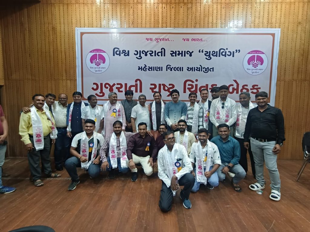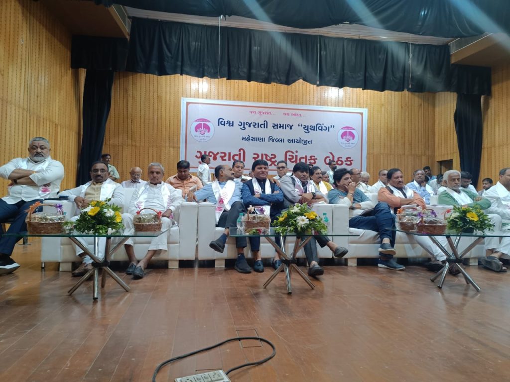 વિશ્વ ગુજરાતી સમાજ યુથ વિંગ મહેસાણા જિલ્લા આયોજિત ગુજરાતી રાષ્ટિય ચિંતક બેઠક apmc હોલ ખાતે ખેતીવાડી ઉત્પન્ન બજાર સમિતિ ઊંઝા ખાતે યોજવામાં આવી