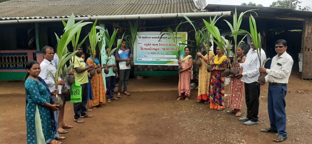 બાગાયત વિભાગથી પ્રકલ્પ સુધી નાળિયેરના આ પ્લાન્ટને પહોંચાડવાનુ સંકલન નું કામ શ્રી કિશોરભાઈ ધોળકિયા કરી રહ્યા છે. અને તેનું વિતરણ તથા વાવેતરનું કામ એન.આર.એમ પ્રકલ્પના કાર્યકર્તા શ્રી છગનભાઈ, ગીરીશભાઈ અને સજીતાબેન ખૂબ જ સરસ રીતે સંભાળી રહ્યા છે.