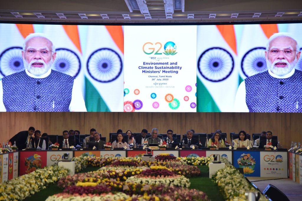પ્રધાનમંત્રી શ્રી નરેન્દ્ર મોદીએ આજે વીડિયો સંદેશ મારફતે ચેન્નાઈમાં જી20 પર્યાવરણ અને આબોહવા મંત્રીઓની બેઠકને સંબોધન કર્યું હતું.
