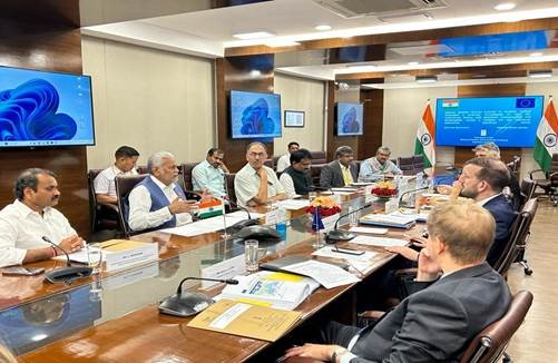 યુરોપિયન યુનિયનના પર્યાવરણ, સમુદ્ર અને મત્સ્યપાલન વિભાગના યુરોપિયન કમિશનર શ્રી વર્જિનિજસ સિન્કેવીયસયસની આગેવાની હેઠળની એક પ્રતિનિધિમંડળે ગઈકાલે નવી દિલ્હીમાં ભારત સરકારના મત્સ્યપાલન, પશુપાલન અને ડેરી મંત્રી શ્રી પરશોત્તમ રૂપાલાની મુલાકાત લીધી હતી. મત્સ્યપાલન અને જળચરઉછેર અંગેના વિવિધ દ્વિપક્ષીય મુદ્દાઓ પર ચર્ચા કરવામાં આવી હતી.