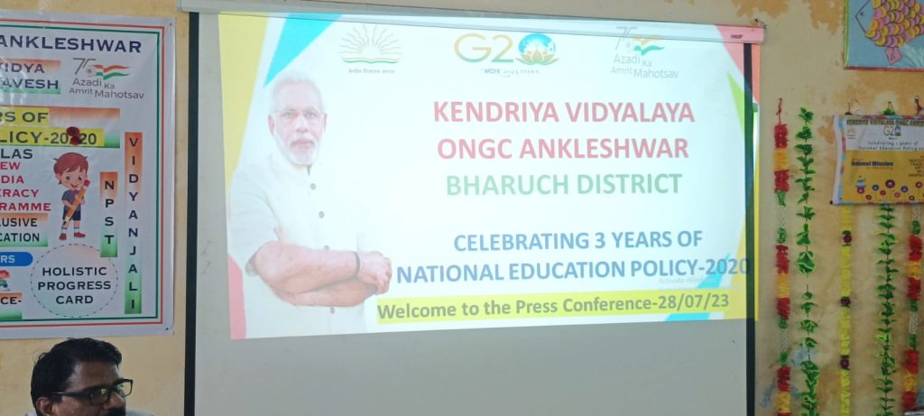 અંકલેશ્વર ઓએનજીસી કોલોની ખાતે આવેલ કેન્દ્રીય વિદ્યાલય ખાતે એજ્યુકેશન પોલિસી ના ત્રણ વર્ષ ની ઉજવણી ના ભાગ રૂપે પત્રકાર પરિષદ યોજાય હતી જેમાં કેન્દ્રીય વિદ્યાલય ના આચાર્ય દ્વારા કેન્દ્ર સરકાર ની રાષ્ટ્રીય શિક્ષણ નીતિ અન્વયે એકવીસમી સદી ની જરૂરિયાત પ્રમાણે વ્યાપક રીતે બહુવિધ શિક્ષણ અંગે માહિતી પુરી પાડવામાં આવી હતી