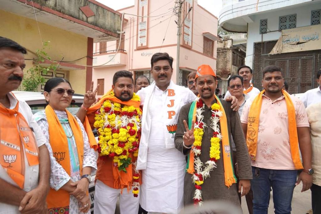 નર્મદાના રાજપીપળા નગરપાલિકાના વોર્ડ નંબર – ૬ ના ભાજપાના યુવા ઉમેદવાર પાર્થ જોષી ચૂંટણી ભવ્ય વિજય થવા બદલ ખૂબ ખૂબ અભિનંદન અને શુભકામના પાઠવ્યા અને વિજયયાત્રા નીકાળી ભાજપના કાર્યકર્તાઓમાં ખૂબ ઉત્સાહનો માહોલ જોવા મળ્યો. આ પ્રસંગે ભાજપ જિલ્લા પ્રમુખ ઘનશ્યામભાઈ પટેલ , નાંદોદના ધારાસભ્ય શ્રીમતી દર્શનાબેન દેશમુખ, જિલ્લા મહામંત્રી નિલ રાવ રાજપીપળા શહેરના પ્રમુખ રમણસિંહ રાઠોડ, નગરપાલિકા પ્રમુખ કુલદીપસિંહ ગોહિલ,નાંદોદ તાલુકા પંચાયત પ્રમુખ હરેશભાઈ વસાવા તથા મંડલ તેમજ મોરચાના હોદ્દેદારોશ્રીઓ નગરપાલિકાના સભ્યશ્રીઓ તથા કાર્યકર્તાઓ આ વિજય યાત્રામાં ઉપસ્થિત રહ્યા હતા, અને ભાજપના વિજયલક્ષ્યનો જય-જયકાર લગાવ્યો હતો.