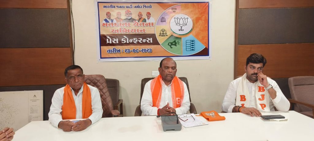 ચૂંટણીઓ વખતે મતદાતા નોંધણી નું કામ ચૂંટણી વિભાગ દ્વારા કરાતું હોય છે, પરંતુ આ વખતે પ્રથમ વખત દેશમાં ભાજપ દ્વારા મતદાતા ચેતના અભિયાન હાથ ધરવામાં આવ્યું છે. જેમાં 18 વર્ષ પૂર્ણ થયા હોય તેવા મતદારોના નામની નોંધણી ભાજપના કાર્યકર્તાઓ દ્વારા કરવામાં આવશે. નર્મદા ના રાજપીપળામાં સાંસદ મનસુખભાઈ વસાવા જિલ્લા મહામંત્રી નિલભાઈ રાવ ભાજપ ના અગ્રણી સુરેશભાઇ વસાવા દ્વારા એક પત્રકાર પરિષદ યોજાઈ હતી.