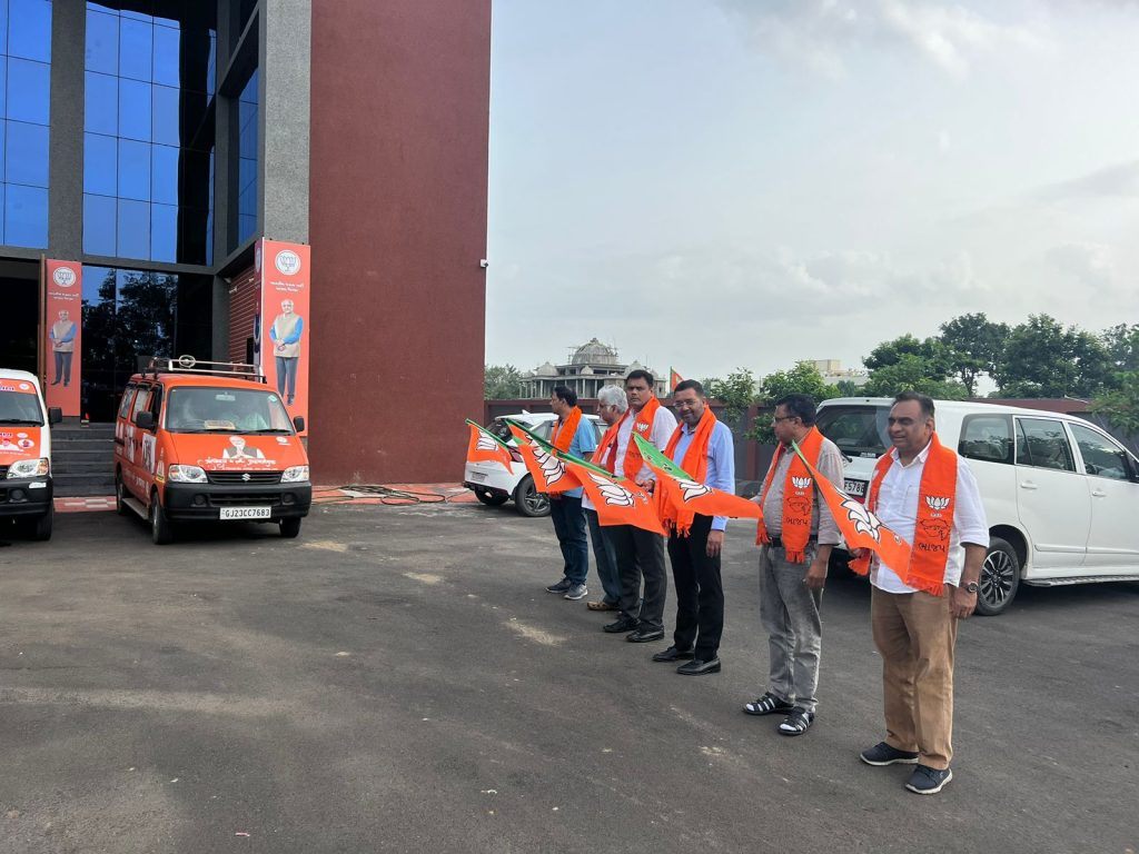 ભારતીય જનતા પાર્ટી દ્વારા શરૂ કરેલ તા.25 થી 31 ઓગસ્ટ સુધી ચાલનાર મતદાતા ચેતના અભિયાન અંતર્ગત આણંદ જિલ્લા ભાજપ કાર્યાલય ખાતે થી 4 ગાડી ને લીલીઝંડી આપી પ્રસ્થાન કરવામાં આવ્યું આ 4 ગાડી જિલ્લાના વિવિધ વિસ્તારમાં ફરી મતદાતા ચેતના અભિયાન ને વેગ આપવા પ્રચાર – પ્રસાર કરશે.