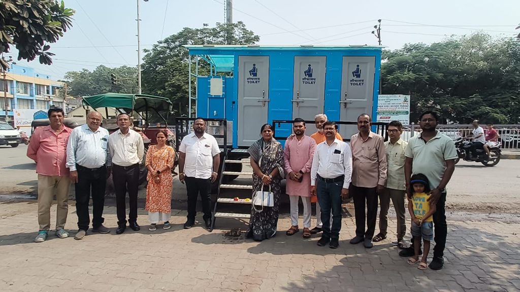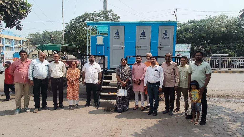 અંકલેશ્વર નગર પાલિકા દ્વારા મોબાઈલ ટોયલેટ વાન વિક્સાવવમાં આવી છે ,જેનું પાલિકા ના પ્રમુખ ના હસ્તે લોકાર્પણ કરવામાં આવ્યું હતું ,આ મોબાઈલ ટોયલેટ વાન ધાર્મિક પ્રસન્ગો ,જાહેર કાર્યક્રમ માં આ ટોયલેટ વાન નો ઉપયોગ કરવામાં આવશે. અંકલેશ્વર નગરપાલિકા દ્વારા રૂપિયા 8 લાખ 79 હજાર ના ખર્ચે મોબાઈલ ટોઇલેટ વાન ખરીદ કરવામાં આવી છે જેનું નગર પાલિકા પ્રમુખ લલીતાબેન રાહપુરોહિત ના હસ્તે લોકાર્પણ કરવામાં આવ્યું હતું આ મોબાઈલ ટોઇલેટ વાન શહેરીજનો ના સામાજીક પ્રસંગોમા તેમજ ધાર્મિક, સાંસ્કૃતિક કાર્યક્રમો માં ઉપયોગી બની રહેશે ,આ પ્રસંગે શહેર પ્રમુખ નરેન્દ્ર પટેલ ,નગર પાલિકા ઉપપ્રમુખ ,ભાવેશ કાયસ્થ ,સહીત નગર પાલિકા ના સભ્યો ઉપસ્થિત રહ્યા હતા